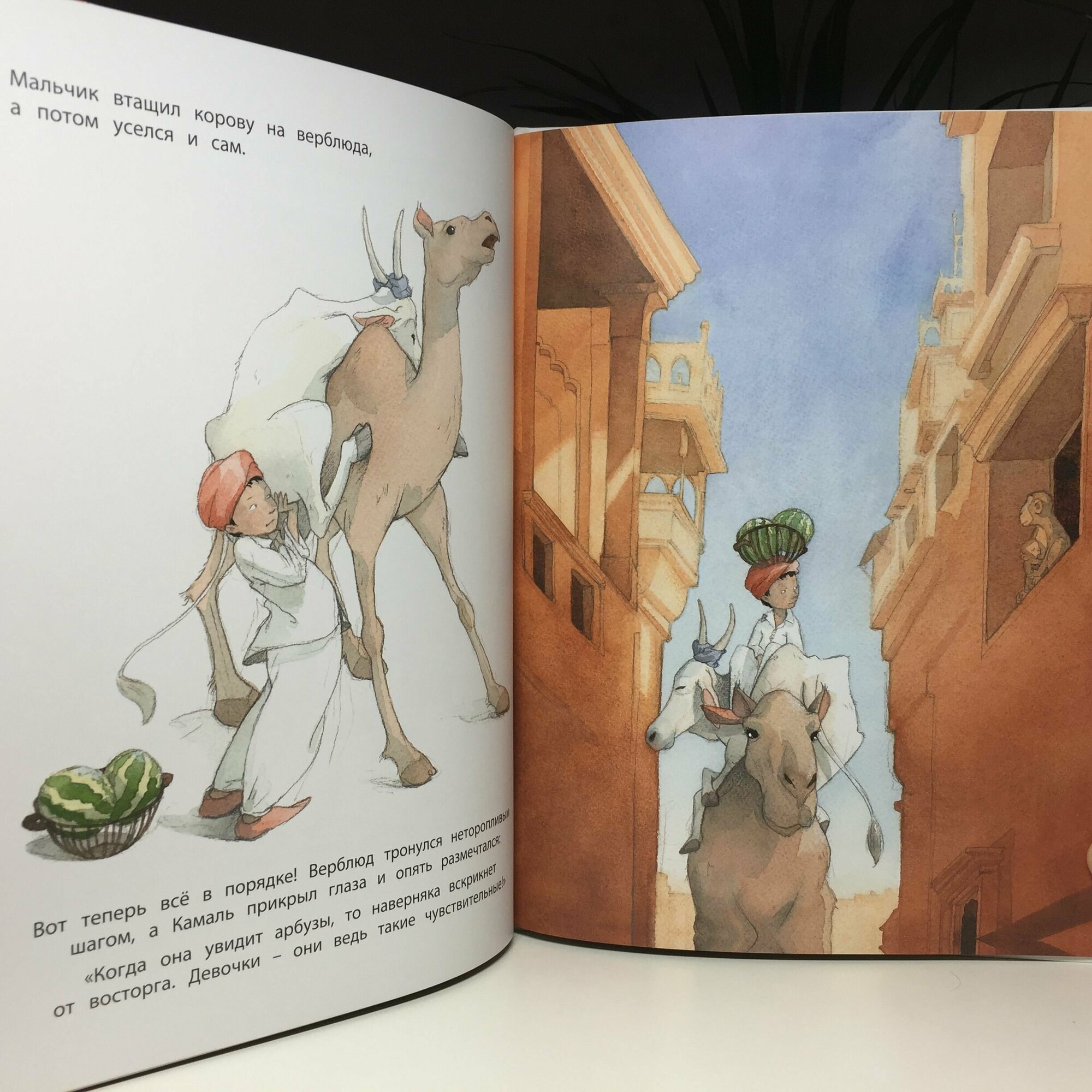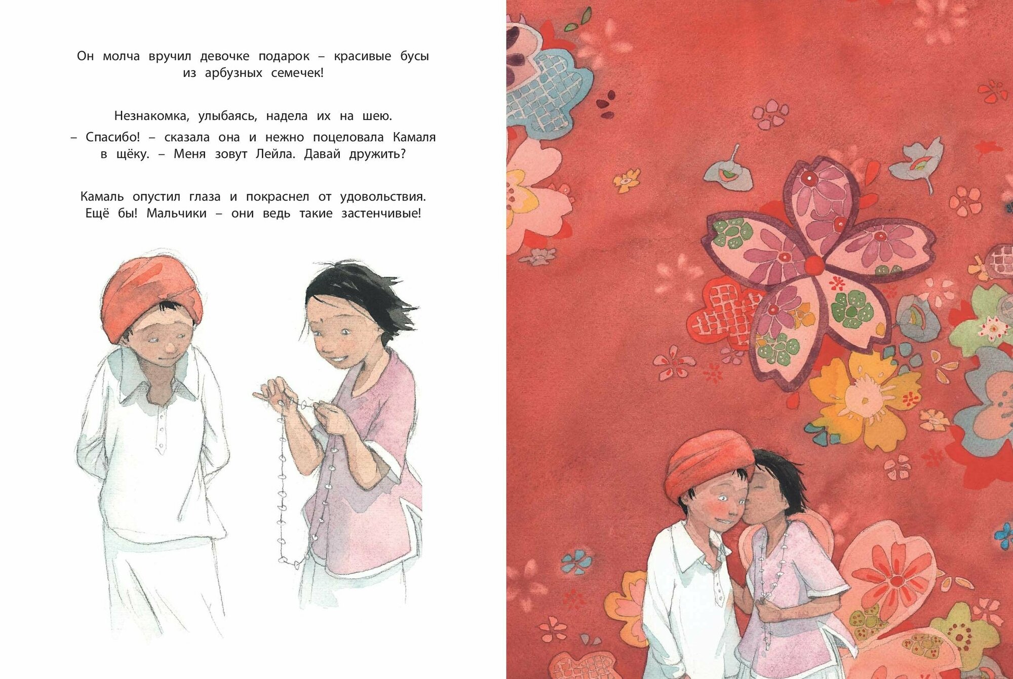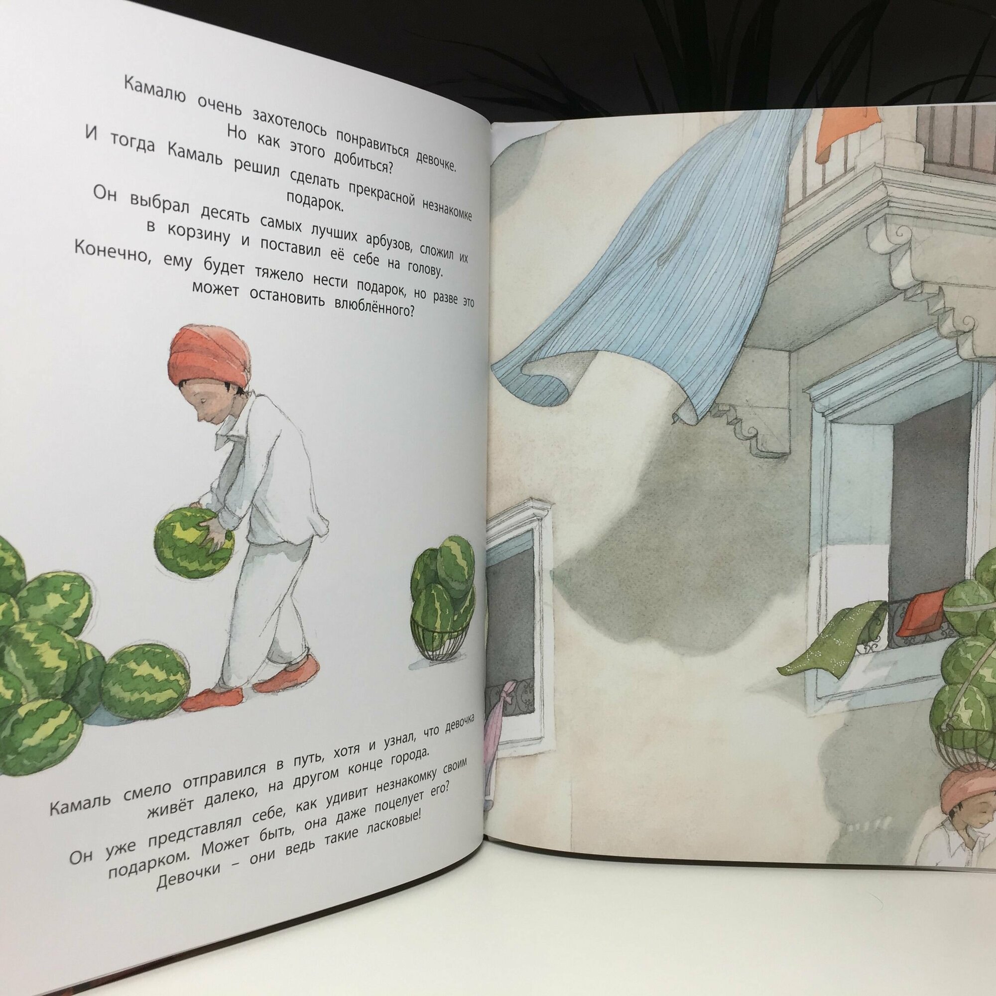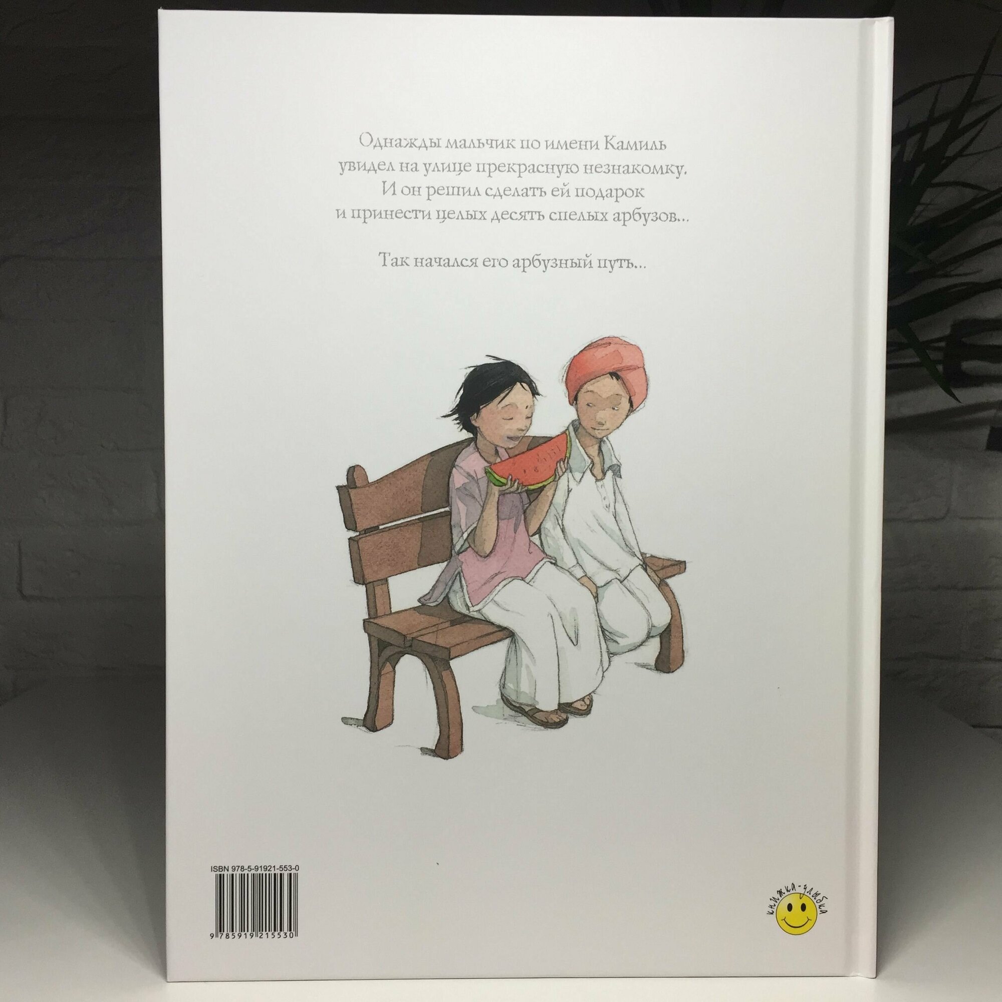 Книжка замечательная! Смотришь на эти красочные сочные картинки и чувствуешь теплоту восточного солнца, аромат тех самых арбузов. Книга о первой любви, о том, как велико это чувство у мальчика, который отважился на нелегкий путь. Также о верности и долге перед теми, кто ему помогал.