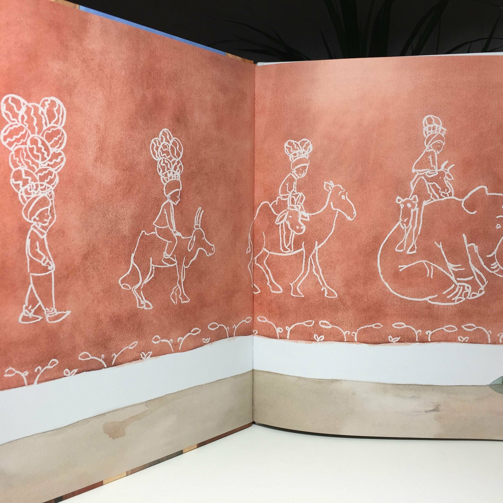 Книга отличная и по качеству и по рисункам. Очень нравится сочетание больших картинок во всю страницу с картинками, вставленными в текст. А еще можно считать арбузы, которых становится все меньше в корзине на голове у мальчика Кемаля
