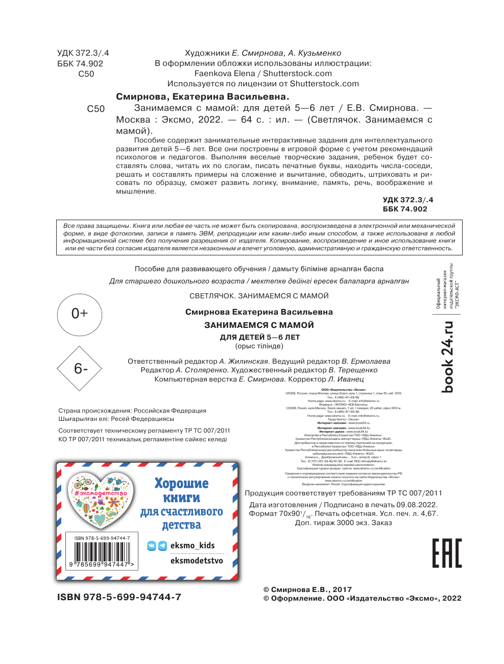 Занимаемся с мамой. Для детей 5-6 лет (Смирнова Елена Валентиновна (соавтор), Смирнова Екатерина Васильевна); Эксмо, 2021