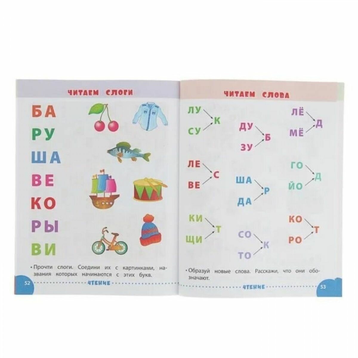 Занимательная яркая книга с интересными интерактивными заданиями для интеллектуального и творческого развитие малыша. Увлекательные задания, которые так нравятся детям, превратят занятия в веселую игру. Ребенок будет с удовольствием играть, а заодно научится читать слова по слогам, писать печатные буквы, находить числа-соседи, решать и составлять примеры на сложение и вычитание, обводить, штриховать и рисовать по образцу, сможет развить логику, внимание, память, речь, воображение и мышление. Разнообразные занимательные задания выгодно выделяют это пособие на фоне подобных развивающих книг и сделают досуг малыша приятным и увлекательным. Очень удобно брать с собой в любую поездку - будет чем занять малыша с пользой для всех.