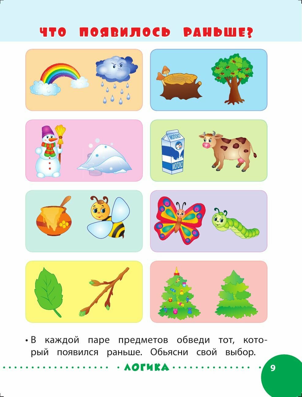 Сначала мне показалась, что 5 лет - это завышенный возраст, можно и с 4 начинать, так как задания в начале книги показались легкими. Но раздел математика уже подразумевает знание цифр и навыки счета. Здесь примеры на сравнение, вычитание, сложение. Чтение также начинается со слогов, буквы уже надо знать.