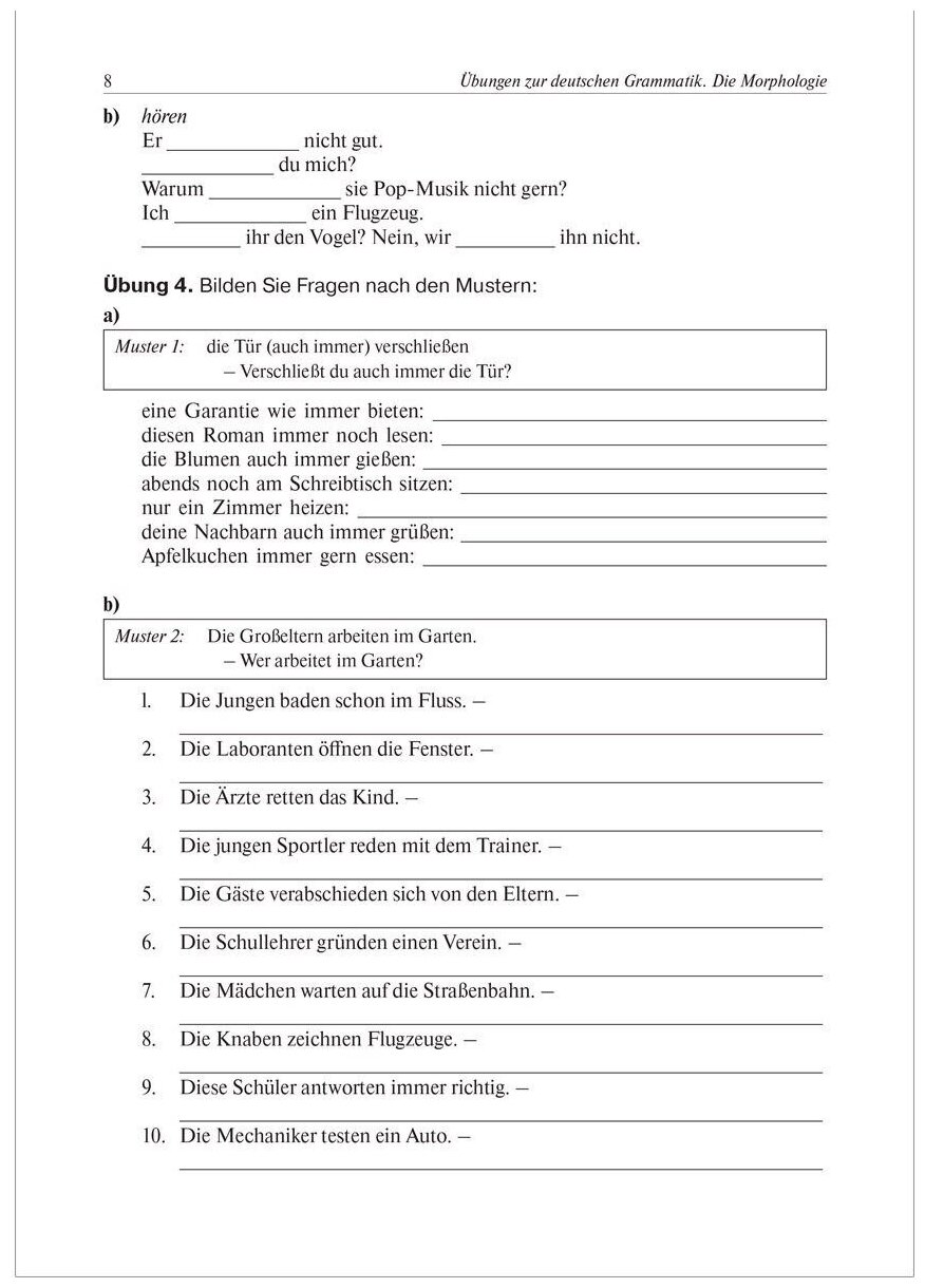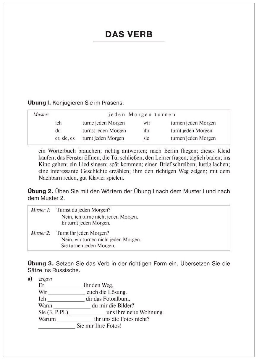 Сборник упражнений по грамматике немецкого языка охватывает основные разделы морфологии, а именно: глагол, артикль, имя существительное, имя прилагательное, имя числительное, местоимение, предлог. Работа над каждой грамматической темой завершается упражнениями на перевод с русского языка. Одной из характерных черт данного пособия является его активная коммуникативная направленность, значительное число упражнений носит креативный характер и предполагает развитие самостоятельного языкового мышления. Пособие снабжено подробным тематическим указателем (Sachverzeichnis), который поможет ориентироваться в предлагаемом тренировочном материале.