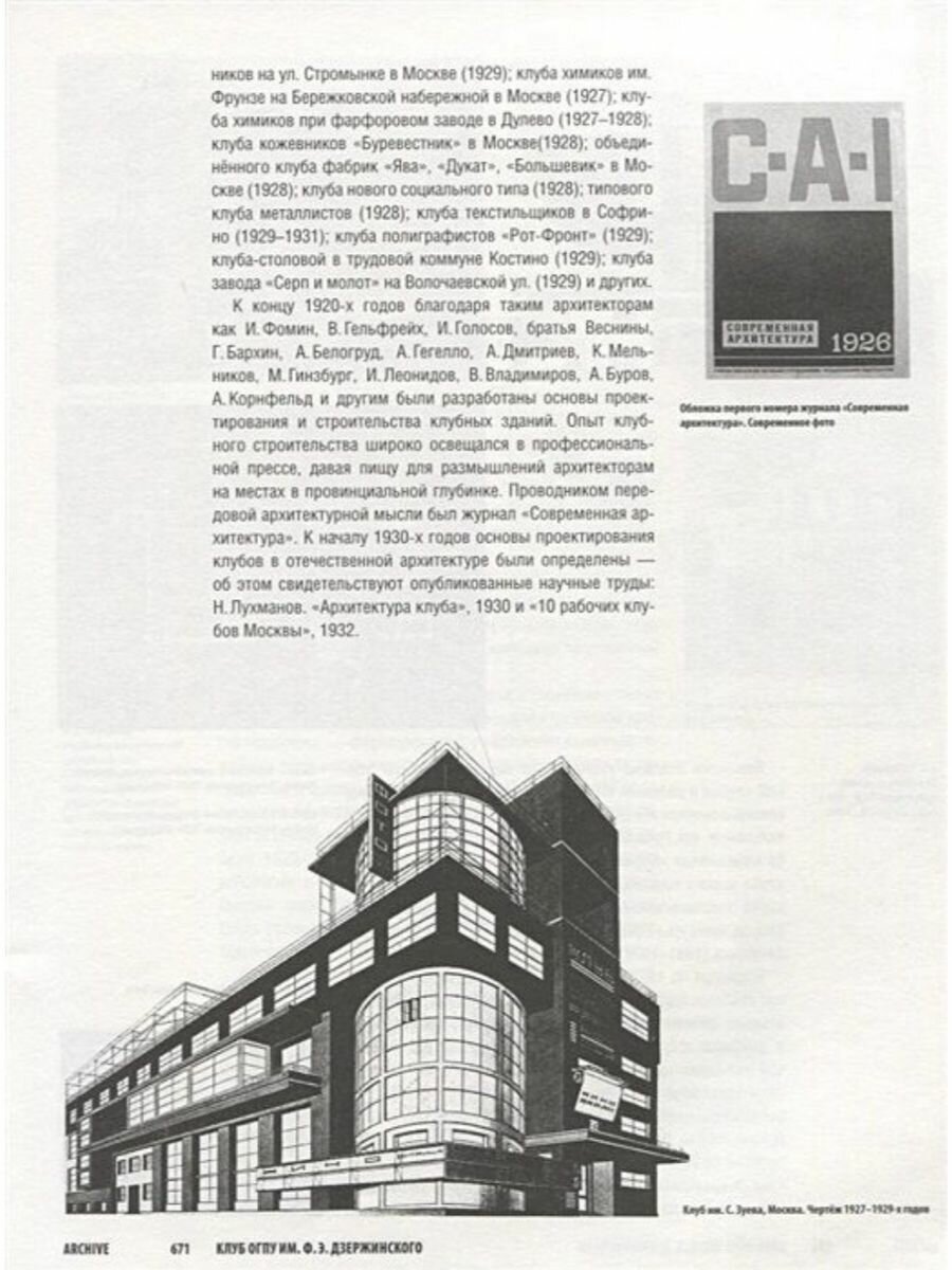 Издание раскрывает архитектурные особенности и историю клубного здания Самары (Куйбышева) клуба им. Ф.Э. Дзержинского. Клуб, построенный в начале 1930-х годов на пересечении улиц Пионерской и Степана Разина (бывший проезд им. Дзержинского), относится к числу наиболее ярких построек зрелого конструктивизма в Самаре. В бурно развивающейся стране Советов клубу отводилась ключевая роль в созидании нового социального устройства на основе советской идеологии. Значимость этой роли заключалась в многочисленных функциях: от занятий по интересам до массовых общественно-политических мероприятий. Сегодня клубы 1930-х — наиболее интересная часть архитектурного наследия. Клуб Дзержинского играл заметную роль в общественной жизни Куйбышева в 1940–1950-е годы. В течение всех этих лет он выполнял функцию городского «джаз-клуба». Парадоксально звучит, но первым в городе джазовым биг-бэндом стал оркестр НКВД, так как «Дзержинка», всегда была ведомственным клубом силовых структур. Кроме исторической ценности клуб имеет и бесспорную архитектурную значимость. В издании приводятся оригинальные чертежи, планы, исторические фотографии и документы связанные с клубом. Авторы надеются, что публикация будет способствовать сохранению этого ценнейшего образца советского клубного строительства для будущих поколений.