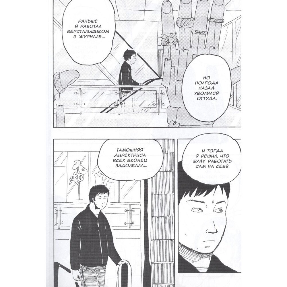 Печать качественная, читать удобно. Если интересуетесь русскими комиксами, вам должно понравиться. В сборнике четыре истории: про дизайнера, который сталкивается с понятием "русская манга", про обезьянку Нину и её приключения, сингл "Продукты горения", в котором затрагиваются вопросы экологии, такие актуальные сейчас, и рассказ о пацанчике, абсурдный и стебный.