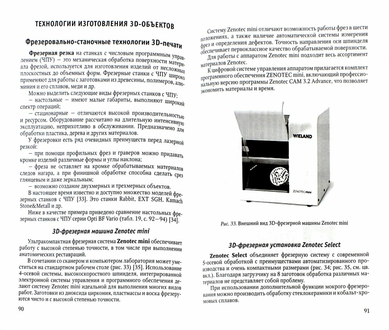 В издании рассмотрены современные прогрессивные методы получения зубных протезов с использованием 3D-технологий. Подробно и систематически изложены технические и методические сведения, необходимые для освоения и последующего применения технологии трехмерной печати зубных протезов в практике стоматологических клиник и стоматологических научно-практических центров. Процесс зубопротезирования с применением 3D-технологий сводится к бесконтактному созданию объемной копии полости рта пациента (сканированию), компьютерному моделированию будущего зубного протеза и последующей 3D-печати самого протеза. Процесс протезирования занимает считанные часы. В монографии подробно рассмотрена классификация методов 3D-печати, их достоинства и недостатки, особенности практического применения. Приведен анализ свойств и характеристик основных и вспомогательных расходных материалов для трехмерной печати. Дана классификация и развернутая характеристика технических средств, применяемых для получения трехмерного изображения полости рта пациента (томографов, сканеров и т. п.). Описаны технологии формирования 3D -объектов с использованием фрезерно-станочных технологий, установок газовой, плазменной, гидроабразивной, лазерной резки исходного материала. Систематизированы сведения по средствам отображения и принтерам для 3D-печати. Подробно рассмотрены вопросы программного сопровождения процесса 3D-печати, пакеты прикладных программ. Изложены в примерах процессы автоматизированной организации работ для изготовления зубных протезов, а также практические приемы применения 3D-печати в ортопедической стоматологии.