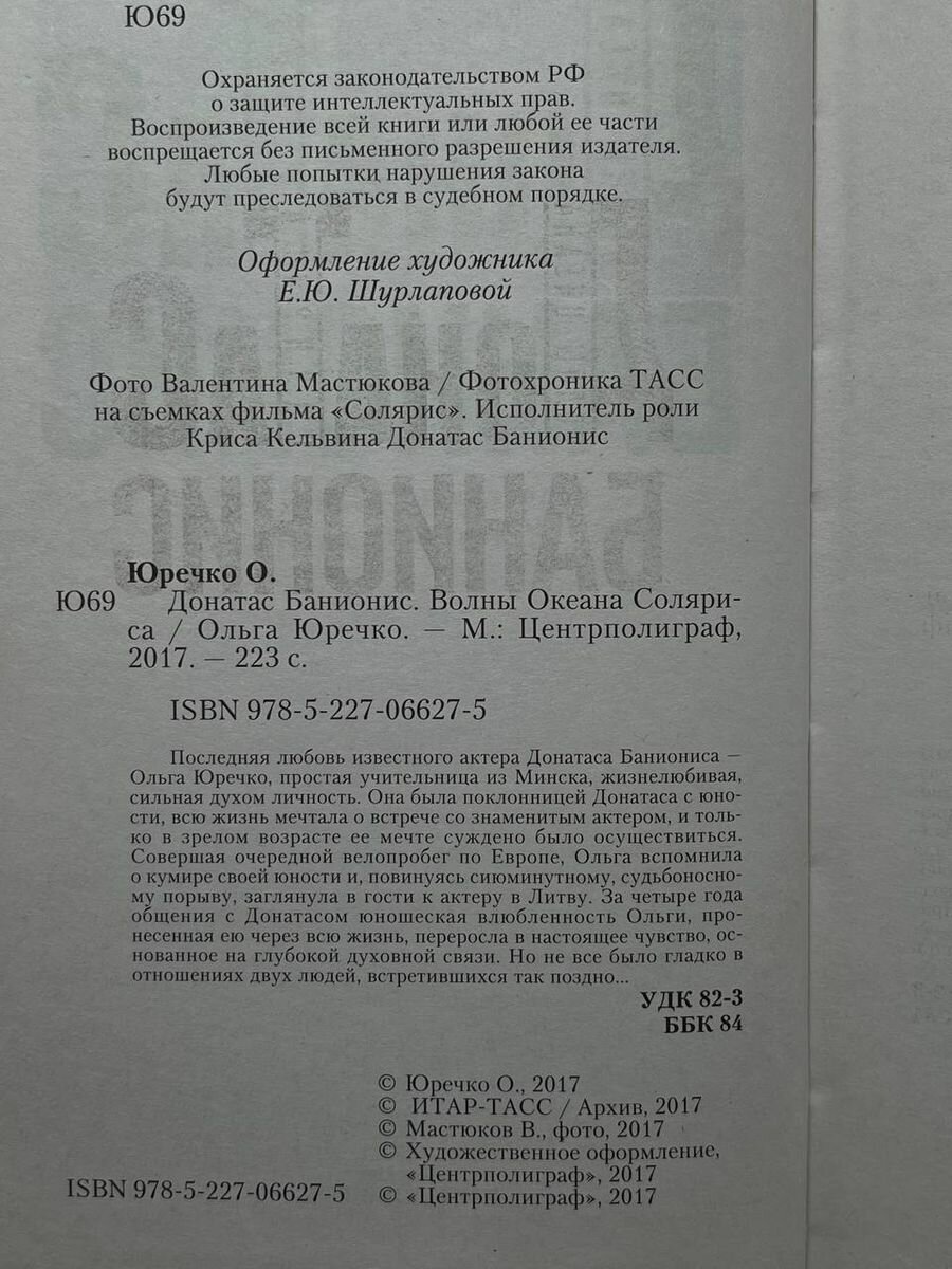 Донатас Банионис. Волны Океана Соляриса (Ольга Юречко); Центрполиграф, 2017