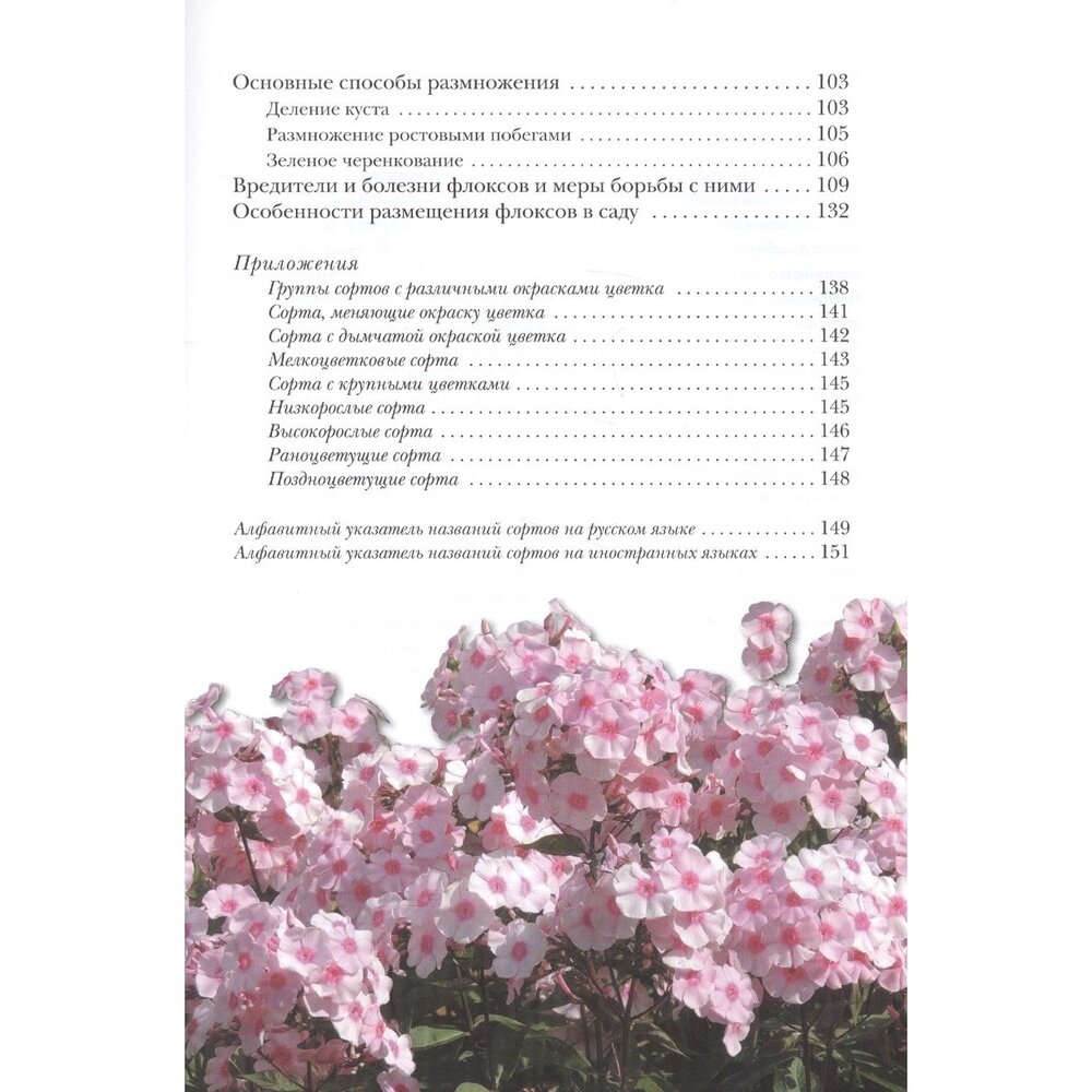 В книге даны рекомендации но выбору места посадки, уходу, профилактике заболеваний и защите от вредителей. Подробно описаны варианты размножения флоксов. Все советы основаны на личном опыте автора и специалистов Ботанического сада МГУ.