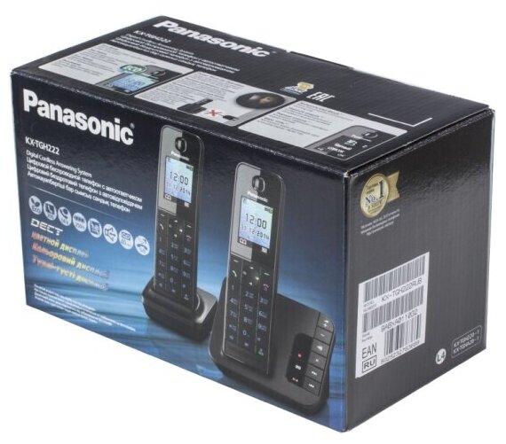 АОН, Caller ID (журнал на 50 вызовов), спикерфон на трубке, телефонный справочник (50 записей), полифонические мелодии звонка, кириллица на дисплее, время/дата на дисплее, KX-TGH222RU – две трубки в комплекте.