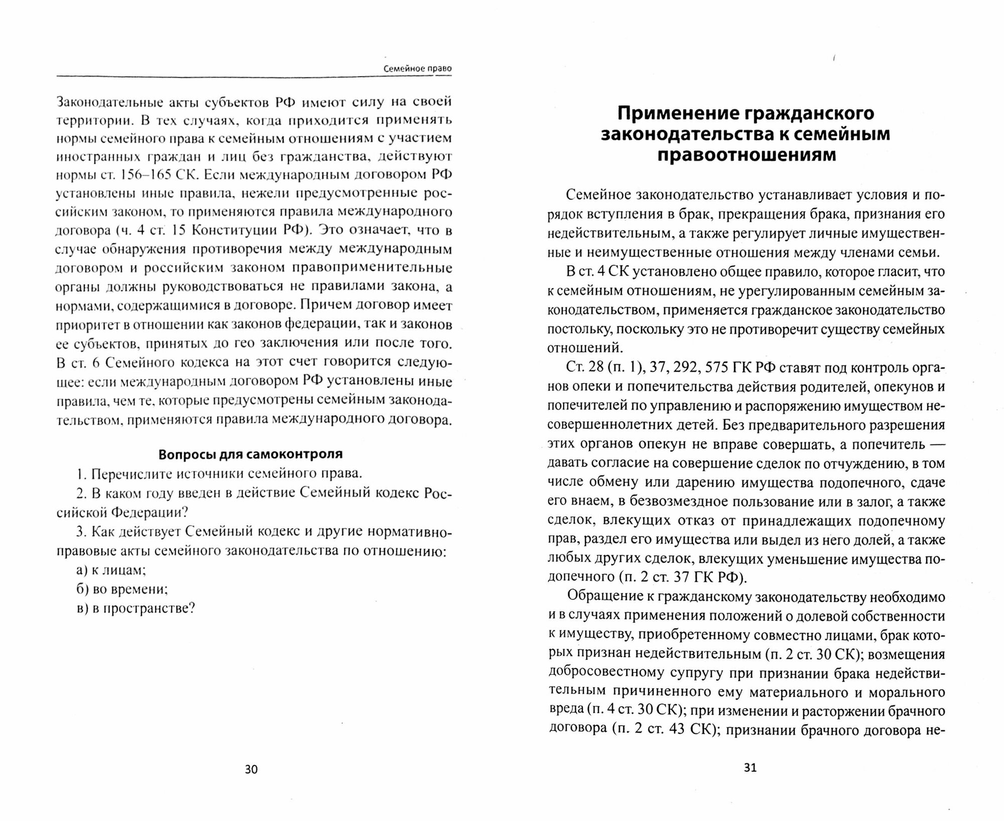 Читал Семейное право изложено все самое основное,можно хорошо подготовиться к экзамену студентам но конечно кроме этой книги надо еще дополнительно читать литературу если хотите знать больше эту дисциплину.Советую т.к у тех студентов у кого нет времени читать и подробно изучать дисциплину то это лучший вариант для подготовки к экзаменам и зачетам.