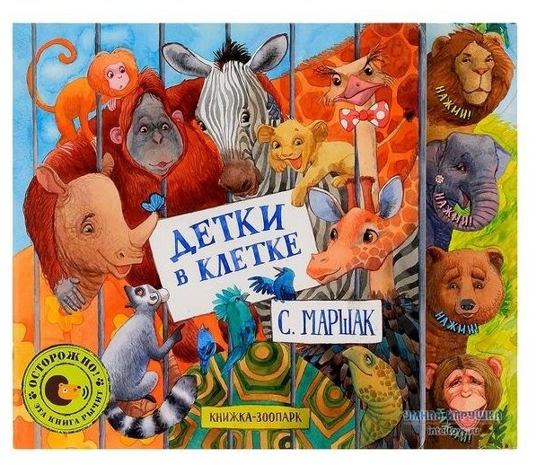 Книжка замурчательная. Во-первых, плотные глянцевые странички, во-вторых, яркие иллюстрации, эмоциональные и радостные, в-третьих - прекрасные стихи Маршака (должно быть на первом месте, но уж как получилось!))) И, в-четвертых, звуки, которые эта книжка издает. Она яркая и громкая. Мы в восторге.