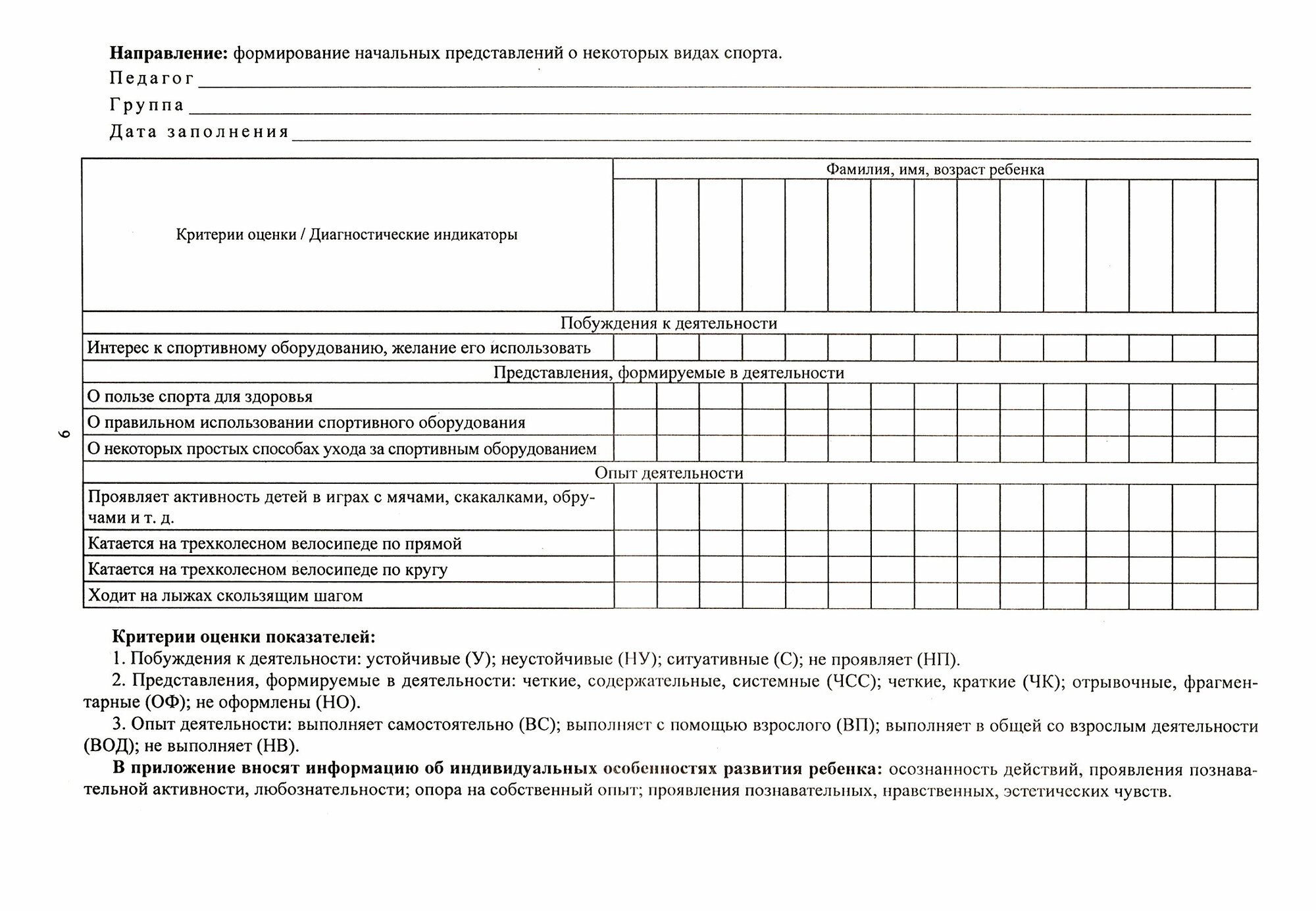 В пособии предложены диагностические карты (листы развития), включающие данные стандартизированных наблюдений педагогов и педагогов-психологов, методики, пробы, показатели, критерии и результаты анализа детской деятельности, позволяющие определить качественную оценку развития разных видов деятельности ребенка и разных сторон его познания, общения, личности в деятельности, что чрезвычайно важно для построения образовательной и коррекционной работы в дошкольной организации.