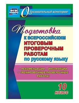 Всероссийская проверочная работа, которую напишут десятиклассники, будет включать задания по русскому языку. Практика системы подготовки к проведению такой формы оценки качества образования отвечает требованиям ФГОС и предполагает формирование диагностического ресурса, который позволит школьникам привыкнуть к экзаменам, попробовать свои возможности в регулярном выполнении контрольных работ, оценить уровень реальных знаний и умений, отследить успехи и неудачи. В пособии представлены рекомендации учителю русского языка по документационному обеспечению проведения проверочных работ, кодификатор планируемых результатов освоения основной образовательной программы среднего общего образования по русскому языку для проведения процедур оценки качества среднего образования, характеристика диагностических материалов, структура проверочной работы, тренировочные проверочные работы по русскому языку, составленные с учетом типичных ошибок и возникающих при изучении определенных тем трудностей, инструкции для учителя и обучающегося.