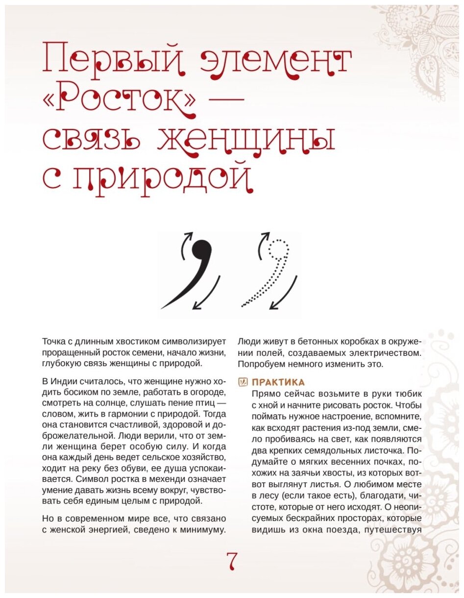Эта книга для людей, которые о мехенди ничего незнают, конус в руке никогда не держали. Для практики слабовата, но для понимания смысла некоторых элементов-пойдет, и довольно приятно написана, при этом больше воды. И! уж очень мало. Рисунки от автора… уж очень слабенькие. Кто хоть пару раз рисовал сам- в этой книге делать нечего (рисую мехенди 2 года, обучалась у Ирины Александровской, чьи эскизы представлены в этой книге, и Юлианы Решетовой. Лучше сразу учиться у преподавателя. не тратьте деньги на эту «книгу»)