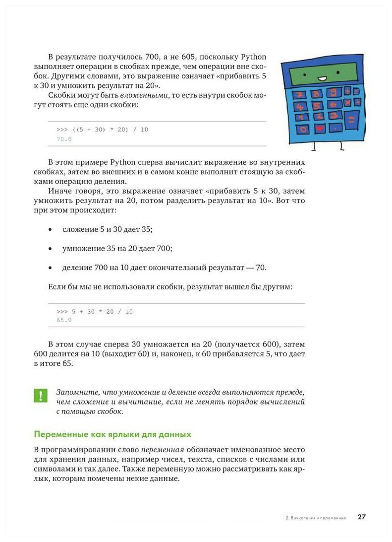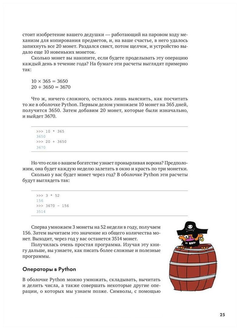 Эта книга - самоучитель по одному из самых востребованных на сегодняшний день языков программирования - Python. Начиная с самых простых действий, шаг за шагом вы будете писать свои программы и постигать тонкости этого языка. Свои знания вы сможете проверить сразу же - на забавных примерах и уморительно смешных заданиях, справиться с которыми помогут прожорливые монстры, секретные агенты и воришки-вороны.