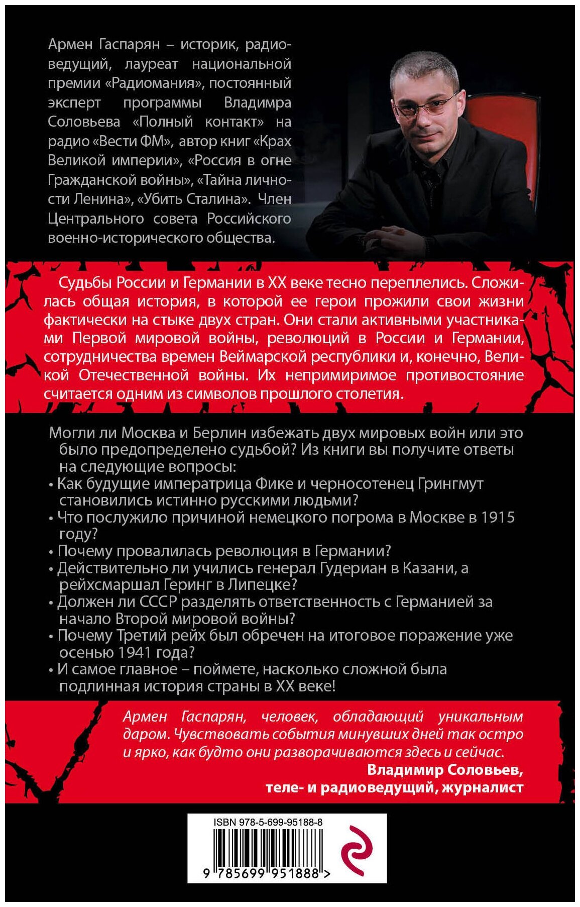 Судьбы России и Германии в XX веке тесно переплелись. Сложилась общая история, в которой ее герои прожили свои жизни фактически на стыке двух стран. Они стали активными участниками Первой мировой войны, революций в России и Германии, сотрудничества времен Веймарской республики и, конечно, Великой Отечественной войны. Их непримиримое противостояние считается одним из символов прошлого столетия. Могли ли Москва и Берлин избежать двух мировых войн или это было предопределено судьбой? Из книги вы получите ответы на следующие вопросы: Как будущие императрица Фике и черносотенец Грингмут становились истинно русскими людьми? Что послужило причиной немецкого погрома в Москве в 1915 году? Почему провалилась революция в Германии? Действительно ли учились генерал Гудериан в Казани, а рейхсмаршал Геринг в Липецке? Должен ли СССР разделять ответственность с Германией за начало Второй мировой войны? Почему Третий рейх был обречен на итоговое поражение уже осенью 1941 года?