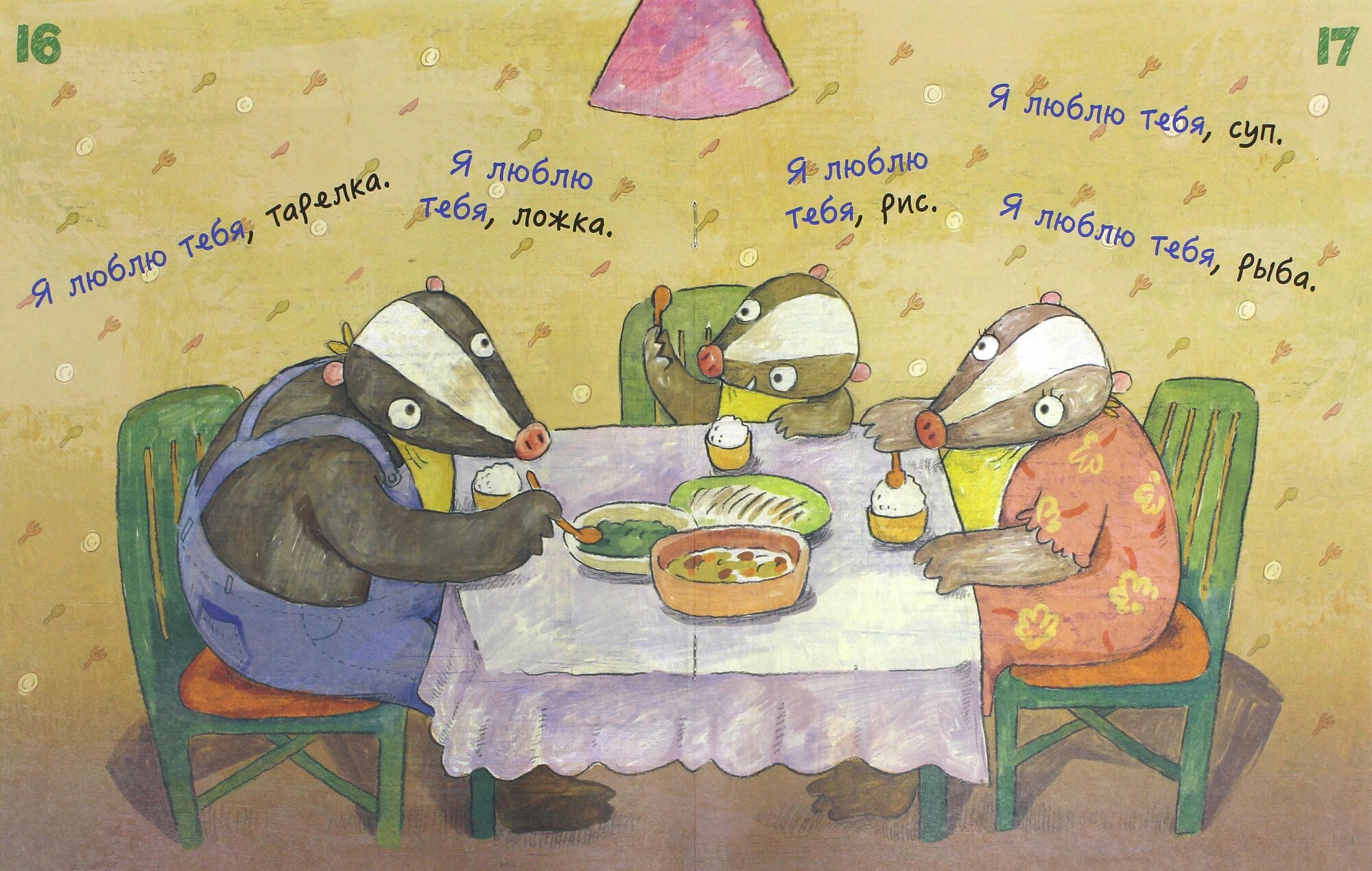 Семья барсуков учит своего малыша барсучка чаще говорить фразу "Я люблю тебя". Ведь любовь согревает сердца и помогает во всех жизненных начинаниях.
