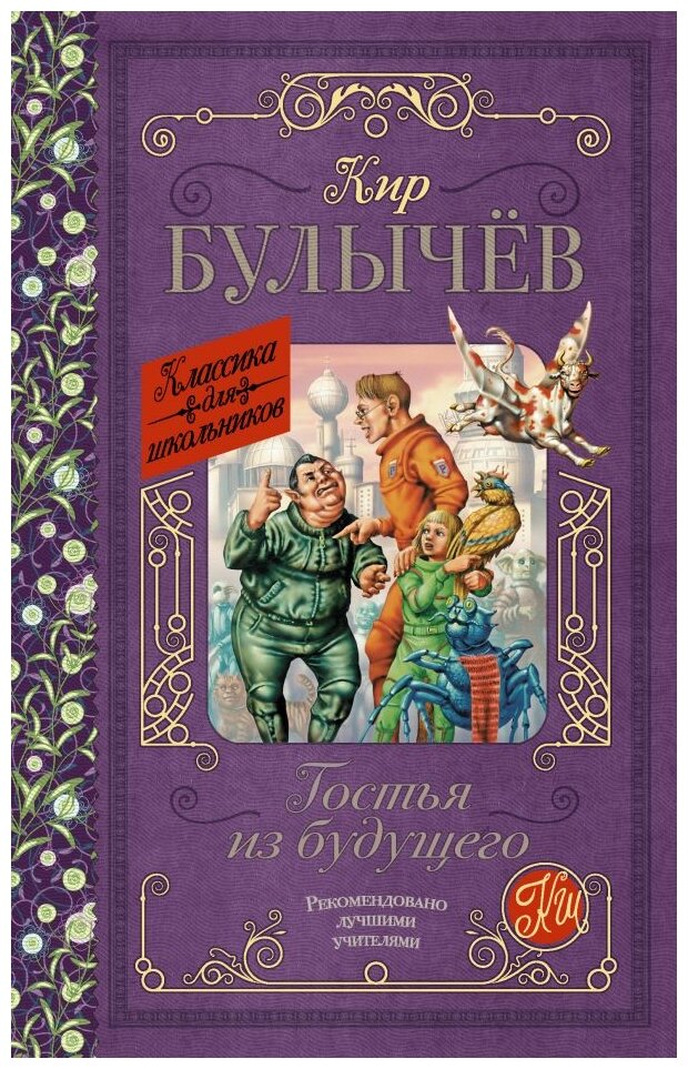 "Гостья из будущего» или "Сто лет тому вперёд" мое любимое произведение у Кира Булычева из тех что я читал. Остальные прочитанные мне показались слишком детскими, правда и Алиса там была маленькой. Любимое еще с детства, не один раз перечитанное и пересмотренное в виде не менее замечательного фильма. Тема фантастики и чудес перемешанная с темой школы это лучшее что может увлечь школьника. Ведь это ему так близко. Но книга интересна не только детям. Я в очередной раз с удовольствием перечитал эту книгу и получил огромное удовольствие, возможно ностальгия. Дети мои также с удовольствием прочитали эту книгу потом прослушали аудиокнигу, а потом посмотрели фильм. Благодаря вечной теме интерес к данному произведению не ослабевает и книга не устаревает. Теперь, что касается самого издания. Оно серийное. Красивая плотная обложка. Офсетные чуть просвечивающие странички. Картинок нет. Шрифт хороший, детям читать будет удобно. Ну и цена минимальна. В общем ничего особенного. Книга подойдет для нетребовательных читателей, для которых текст и цена это главное. Тем же кто предпочитает книги для домашней библиотеки с картинками улучшенного качества стоит обратить внимание на издания с иллюстрациями Евгения Мигунова. Его иллюстрации усилят впечатление от книги и помогут ребенку лучше представить героев произведения. Издания с иллюстрациями имеются и дорогие, изданные в улучшенном качестве и дешевые, на газетной бумаге. В общем данное произведение каждый может выбрать на свой вкус и в любом качестве. И в каком бы качестве вы не выбрали эту книгу она все равно будет одной из самых интересных и запоминающихся из имеющихся сейчас.