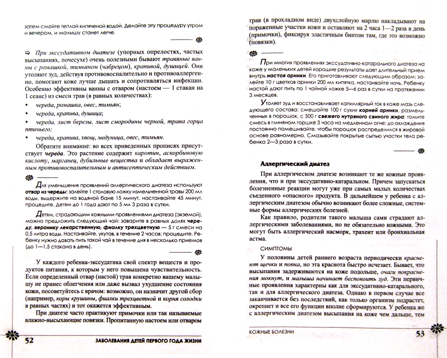 Просмотрела много книг по детским болезням - множество написано непонятным языком, перегружено информацией о лекарствах, а вот понять, что именно происходит с ребенком и что делать в отсутствие врача - такое встречается редко. Данная книга очень порадовала - несмотря на небольшой объем, содержание очень достойное - изложены все необходимые сведения по часто встречающимся детским болезням - симптомы, их развитие, рекомендации к действиям (в каких случаях срочно вызывать врача, а когда можно справиться самостоятельно, что именно делать). Прописано, чего нельзя делать до приезда врача, как проводить основные медицинские процедуры (мерить температуру, давать лекарство детям, собирать анализы, закапывать, ставить клизму, тепловые процедуры) и использовать фитотерапию и ароматерапию. При этом нет прямых указаний на то, какие аптечные лекарства давать ребенку - и правильно, чтобы не навредить (много у них побочных эффектов), да и в случае необходимости такие назначения должен делать врач, - зато описано много других способов помощи (рекомендации по питанию, фиточай, настойки - эти разделы особо радуют, потому что рецепты не бездумно списанные из "народных лечебников" сборы по 10-15 наименований, а простые доступные и легкие для усвоения детям, состоят из 2-4 доступных трав или овощей-фруктов). Текст написан понятным языком, вполне позволяет распознать симптомы болезни и принять доступные адекватные меры. Шрифт мелковат, но структурирован таким образом, что всё легко читается и воспринимается. Теперь рекламирую книгу своим подругам. И всем остальным - очень рекомендую!
