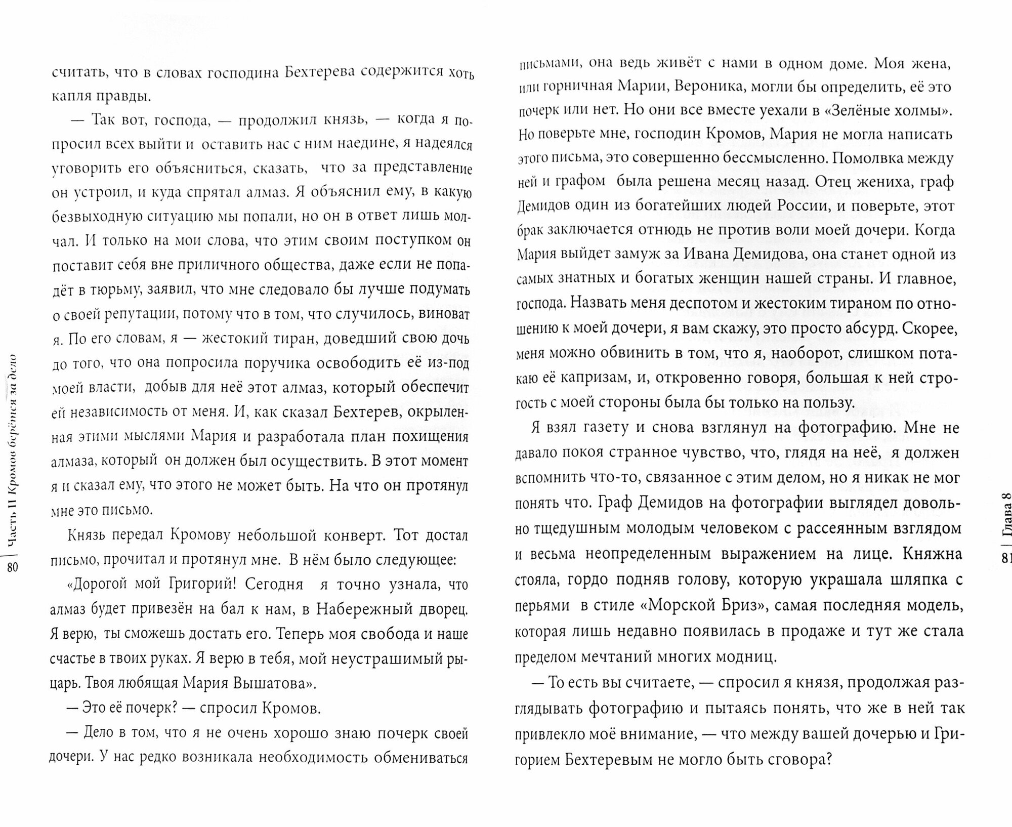 Основой сюжета книги является расследование кражи драгоценности во дворце богатого вельможи в Москве в конце XIX века.