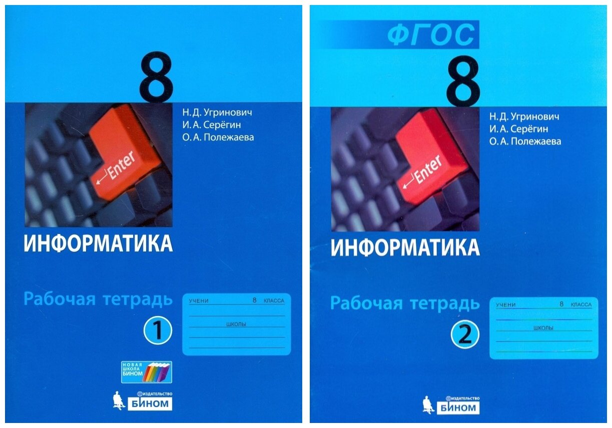 Информатика. 8 класс. Рабочая тетрадь. В 2-х частях (Угринович Николай Дмитриевич, Серегин Игорь Александрович, Полежаева Ольга Александровна); Просвещение/Бином, 2018