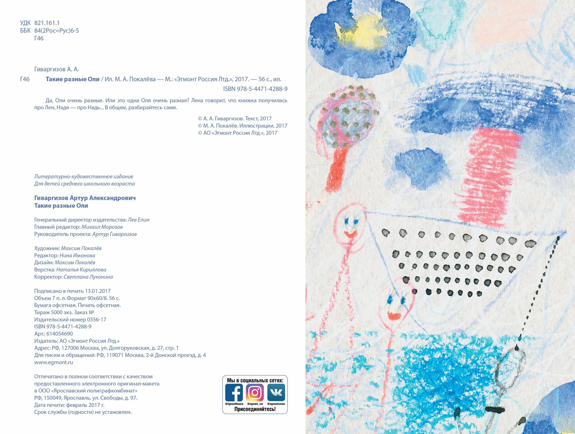 Да, Оли очень разные. Или это одна Оля очень разная? Лена говорит, что книжка получилась про Лен, Надя – что про Надь… В общем разбирайтесь сами. «Такие разные Оли» – художественный альбом с рассказами Артура Гиваргизова и рисунками Максима Покалёва, яркий взрывной творческий симбиоз, который украсит домашнюю библиотеку самого взыскательного читателя.