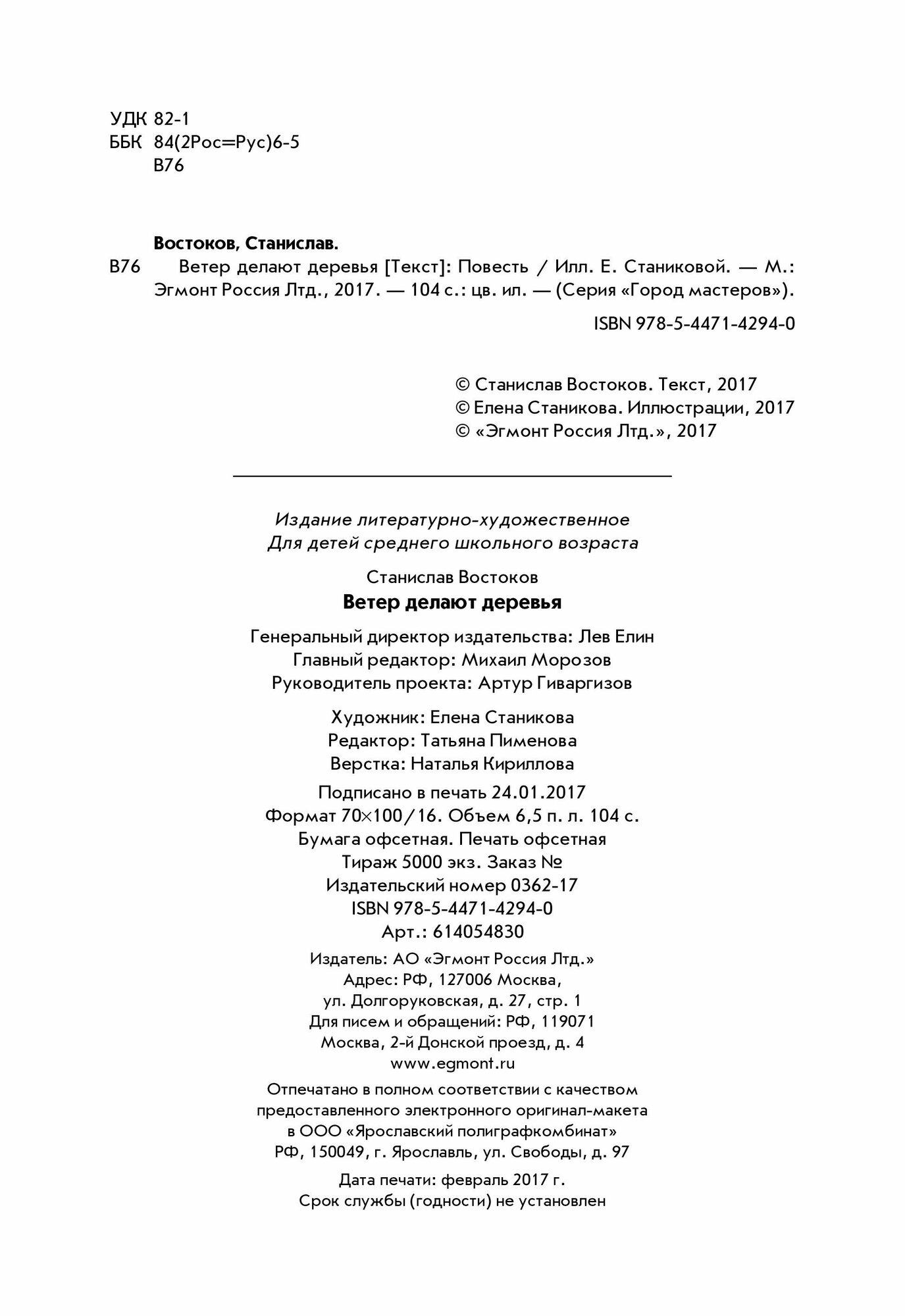 Книга: Ветер делают деревья (Востоков Станислав Владимирович); Эгмонт, 2017