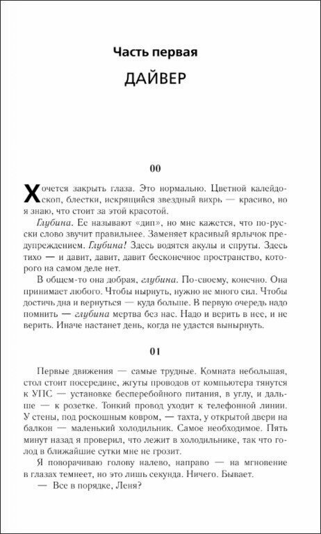 Ест книги, которые предсказывают будущее. Это одна из них. Описание аськи. дайверы, Глубина, Диптаун, возможность прожить еще одну жизнь там, где ты – кто угодно, любое обличье, любая судьба. Самый притягательный наркотик, дающий призрачную свободу.