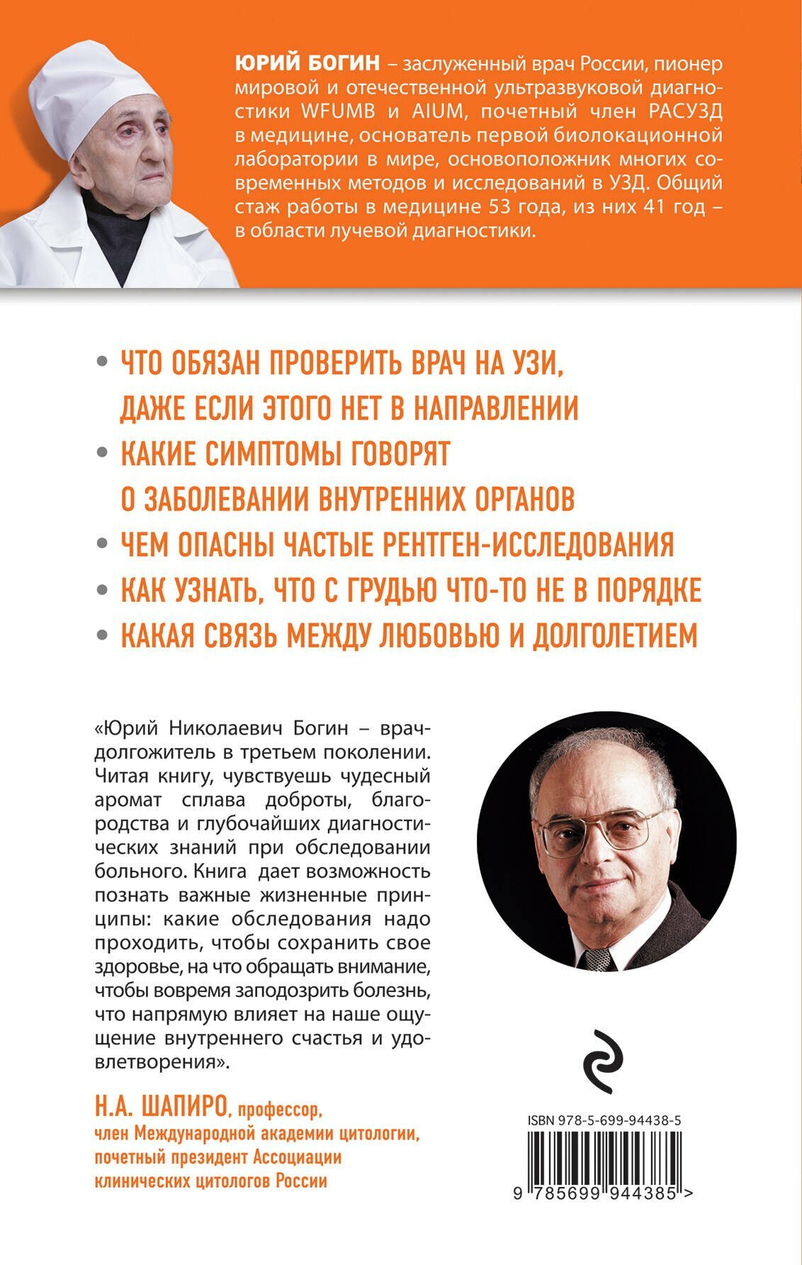 Удивительная история жизни и долголетия врача — пионера отечественной ультразвуковой диагностики. Юрий Николаевич Богин стоял у истоков развития этого направления медицины. Он сам создавал и сам тестировал первые аппараты (а они были величиной с небольшой дом!), сам проводил первые исследования и совершал открытия, которые сегодня кажутся нам совершенно «обыкновенными» вещами. Сейчас ему 92 года. Активный, умный и проницательный врач, легенда отечественной медицины, готов рассказать, как сохранить здоровье и долголетие на долгие годы.
