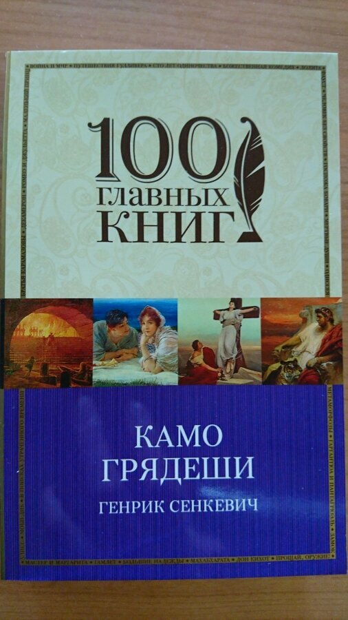 Заказывала данную книгу на сайте «Лабиринта»: заказ пришел в срок, качество книги соответствует ожидаемому и цене – мягкая обложка, удобный карманный вариант (для чего собственно и покупала). Страницы не белые, тонкие, если сильно тереть, то типографская краска размазывается. Теперь впечатления от прочтения «Камо грядеши»: не скажу, что я любитель исторических романов, но данное произведение прочла с интересом от начала и до конца. Даже если вы не спец в области истории древнего мира, текс вам будет понятен, читается легко. Нетривиальная история любви не оставит вас равнодушным. Описание жестокости нравов (а точнее безнравственности) того времени, бесчинств императора Нерона и расправ над христианами оставило у меня очень тревожное впечатление, собственно из-за чего и не являюсь поклонником такого жанра. К прочтению рекомендую всем, кроме детей и особо чувствительных персон.