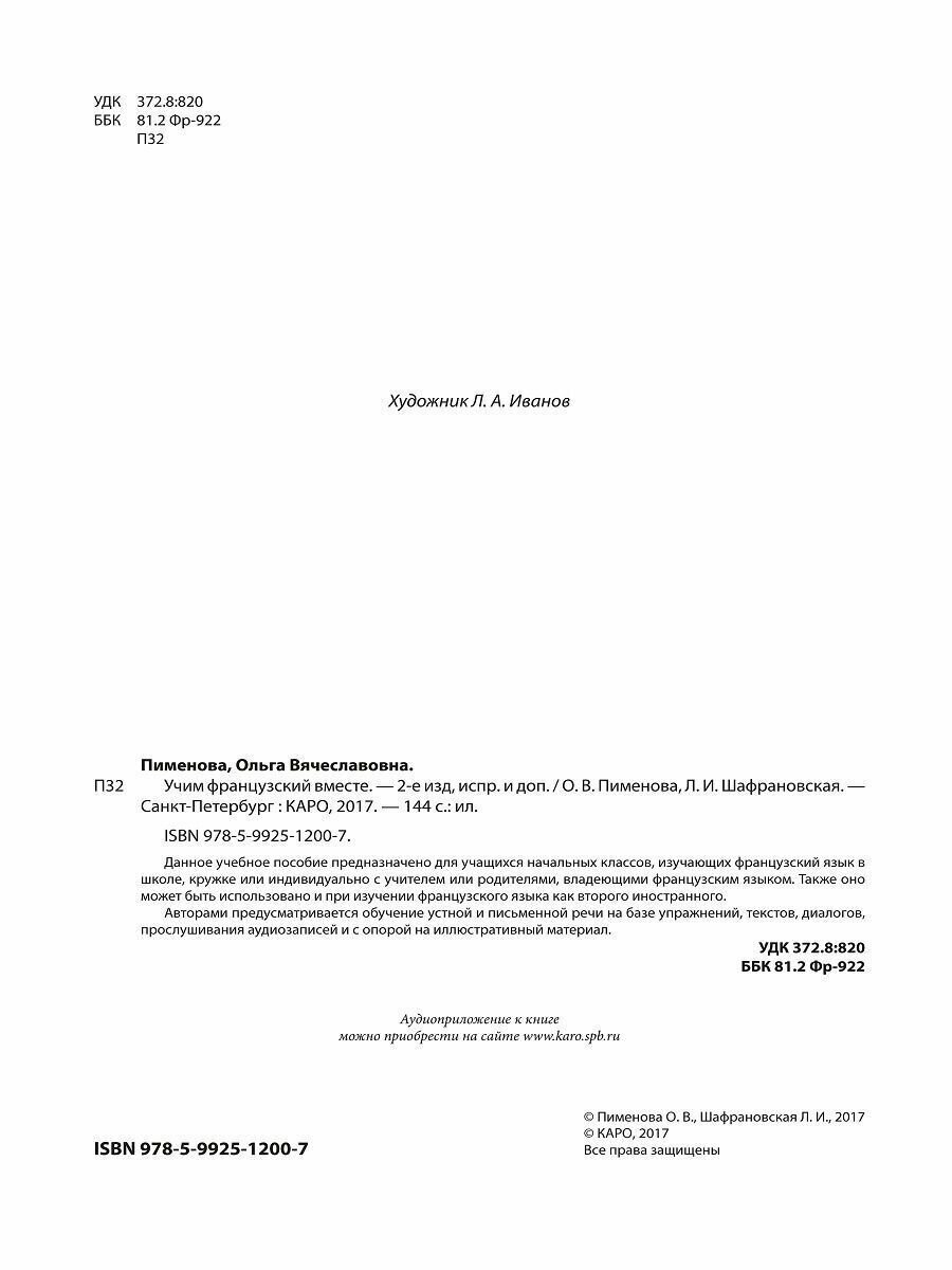 Книга: Учим французский вместе (Пименова Ольга Вячеславовна, Шафрановская Людмила Игоревна); Каро, 2017