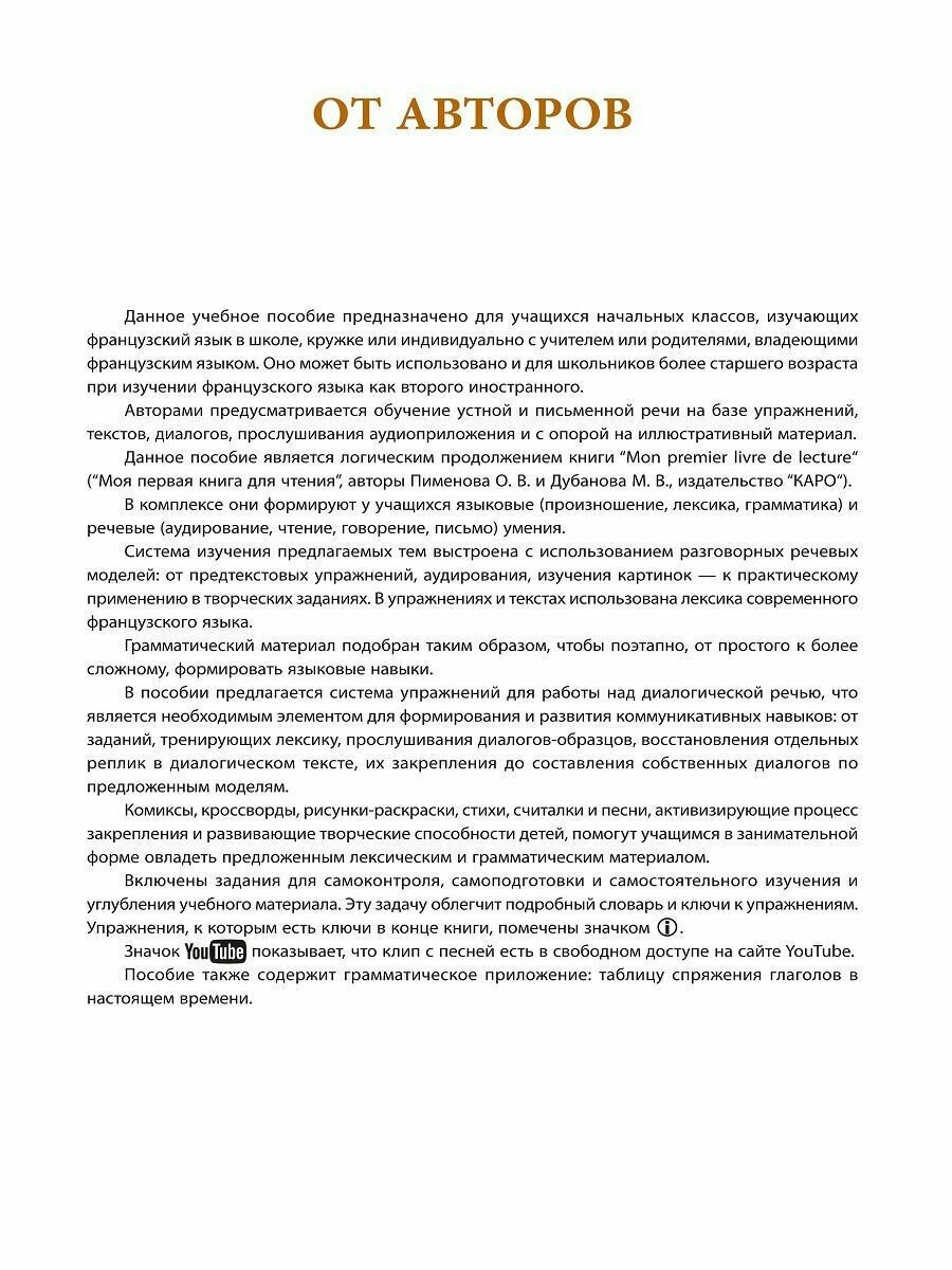 Данное учебное пособие предназначено для учащихся начальных классов, изучающих французский язык в школе, кружке или индивидуально с учителем или родителями, владеющими французским языком. Также оно может быть использовано и при изучении французского языка как второго иностранного.