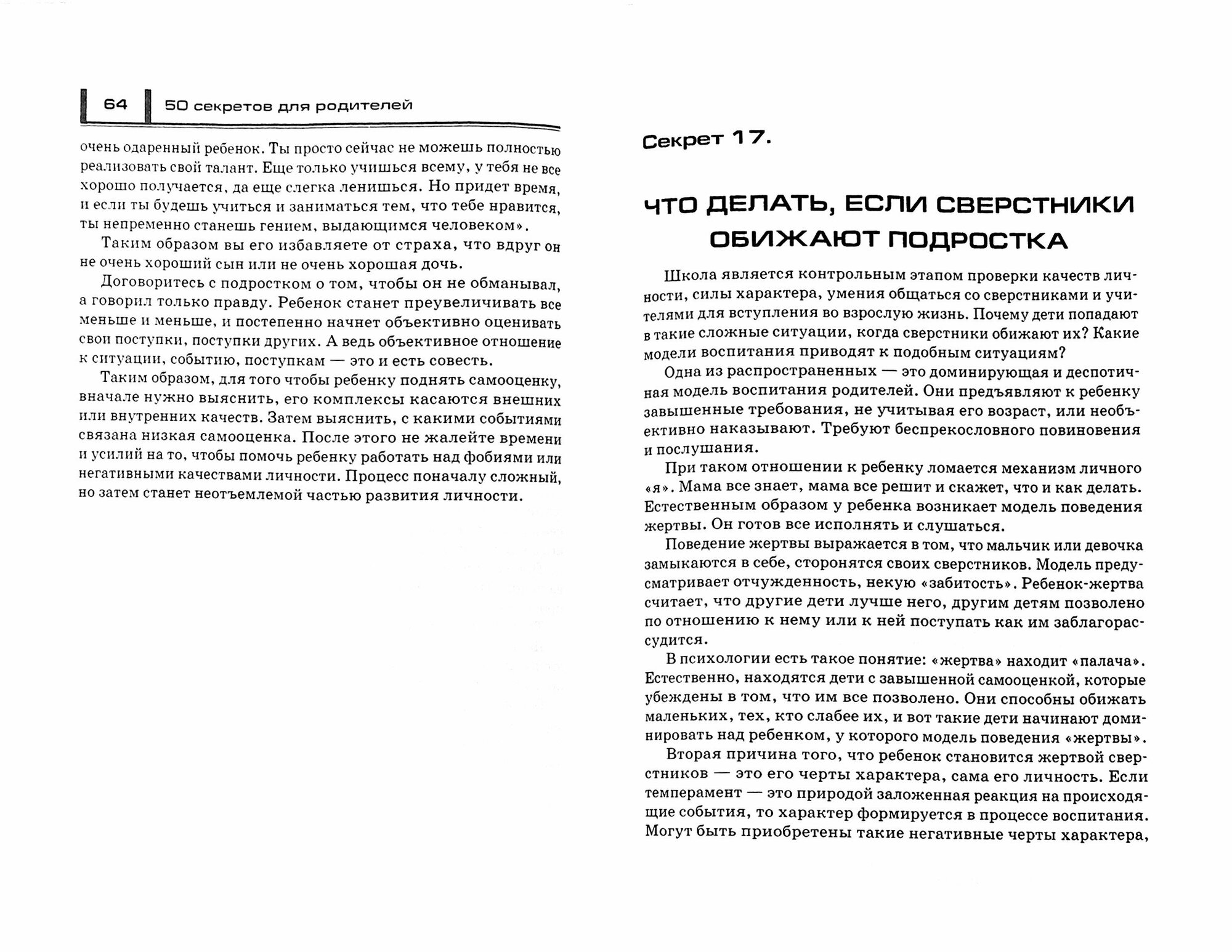 Подростковый возраст - именно тот период, когда все удачи и упущения воспитания выходят на поверхность. Ситуации в школе и дома для родителей - это настоящий экзамен. В этой книге вы найдете ценные советы, затрагивающие самые острые темы последнего времени.