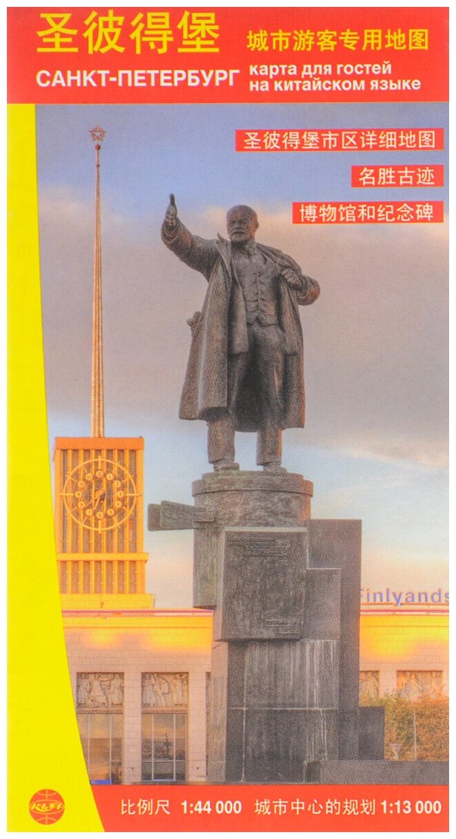 Карта разработана специально для китайских гостей Санкт-Петербурга. Нанесены все объекты города, вызывающие интерес у туристов. Показаны наиболее известные памятники архитектуры исторического центра города. Особое внимание уделено Ленинским и революционным местам. Схема метро. Справочная информация.