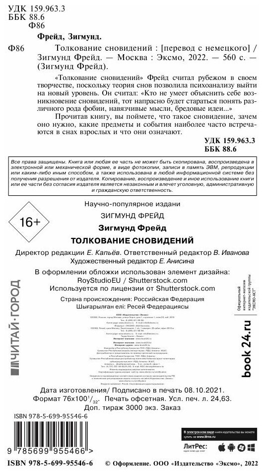Книга: Толкование сновидений (Фрейд Зигмунд); ООО "Издательство "Эксмо", 2020