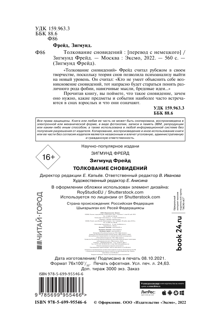 На сегодняшний день товар «Книга: Толкование сновидений (Фрейд Зигмунд); ООО "Издательство "Эксмо", 2020» можно купить с кешбеком в 4 магазинах: book24, Буквоед, Яндекс.Маркет, Читай-город