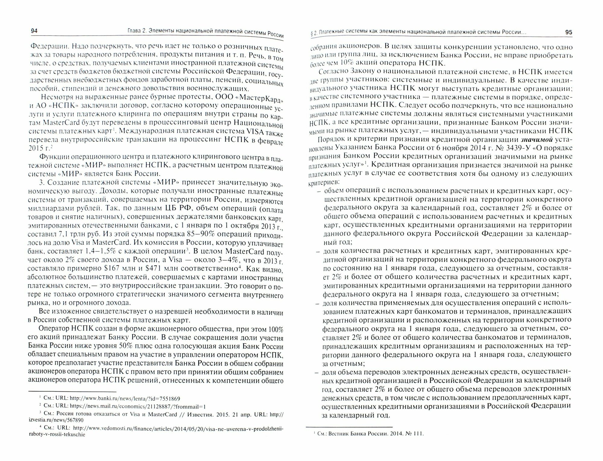 Национальная платежная система рассматривается как трехуровневая система на основе единых принципов построения. Рассмотрены элементы национальной платежной системы, составляющие ее структуру, включая различные виды платежных систем. Предложен анализ правовых основ организации взаимодействия в национальной платежной системе России на современном этапе и оценка ее эффективности, а также способы поддержания устойчивости национальной платежной системы. Рассмотрены применяющиеся в национальной платежной системе системы расчетов, а также используемые платежные инструменты. Уделено внимание правовым аспектам функционирования платежной системы "МИР", в которой уже участвуют 142 банка, и платежной карте "МИР".