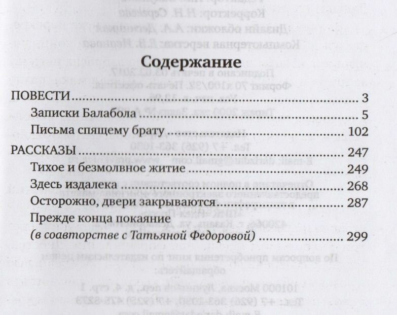 В сборник "Письма спящему брату" вошли две повести и четыре рассказа (один написан в соавторстве с Т. Федоровой). Повесть "Записки Балабола" продолжает знаменитые "Письма Баламута" К.С.