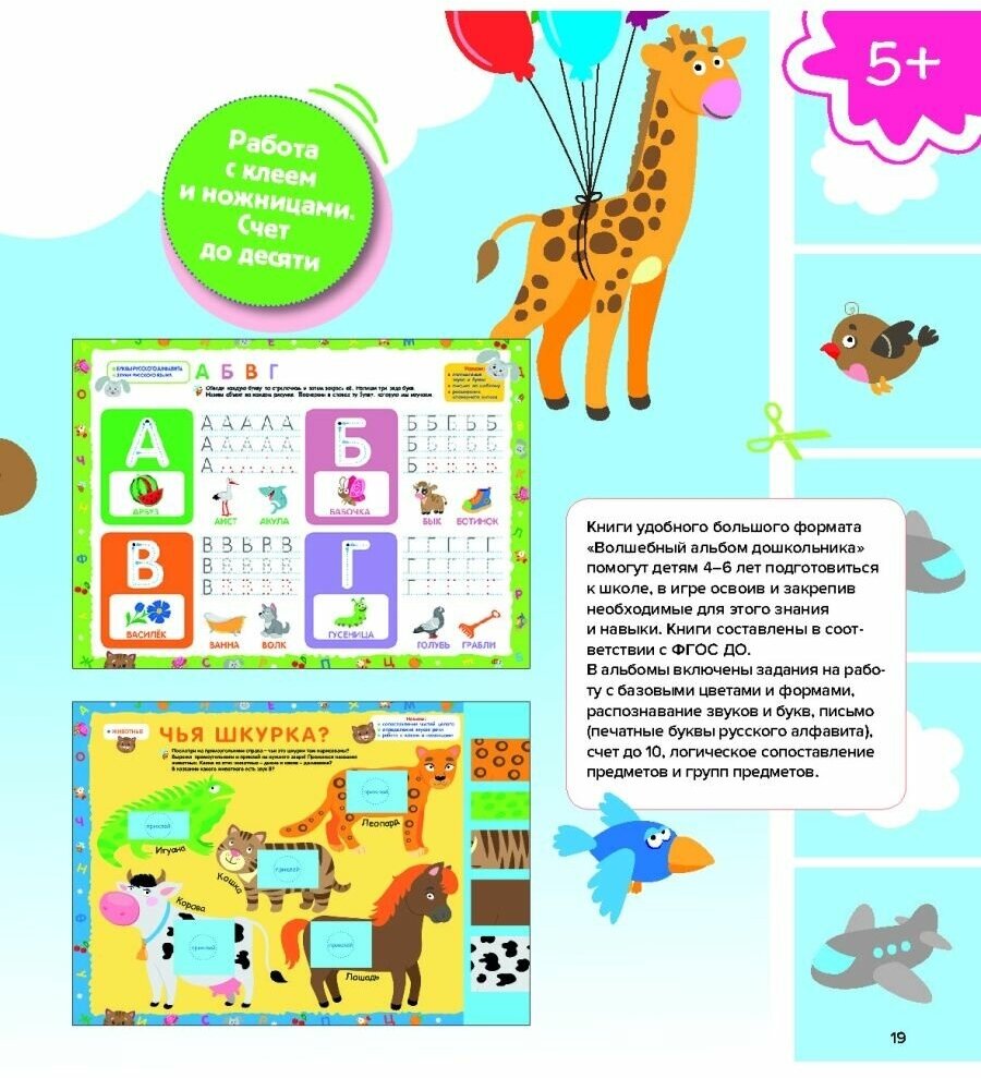 Серия альбомов "Познаю, играя" предназначена для проведения игровых занятий с детьми 4-6 лет и может использоваться в качестве дополнительного материала для подготовки ребёнка к школе как в домашних условиях, так и в детских дошкольных учреждениях. В альбомы включены задания на работу с базовыми цветами и формами, распознавание звуков и букв, письмо (печатные буквы русского алфавита), счёт до 10, логическое сопоставление предметов и групп предметов. Задания развивают творческие и интеллектуальные способности ребёнка и включают различные виды деятельности: соединение точек по порядку, раскрашивание, вырезание, работу с клеем. Предполагается, что все тексты в книге читает взрослый. Альбом издан в двух вариантах оформления обложки.