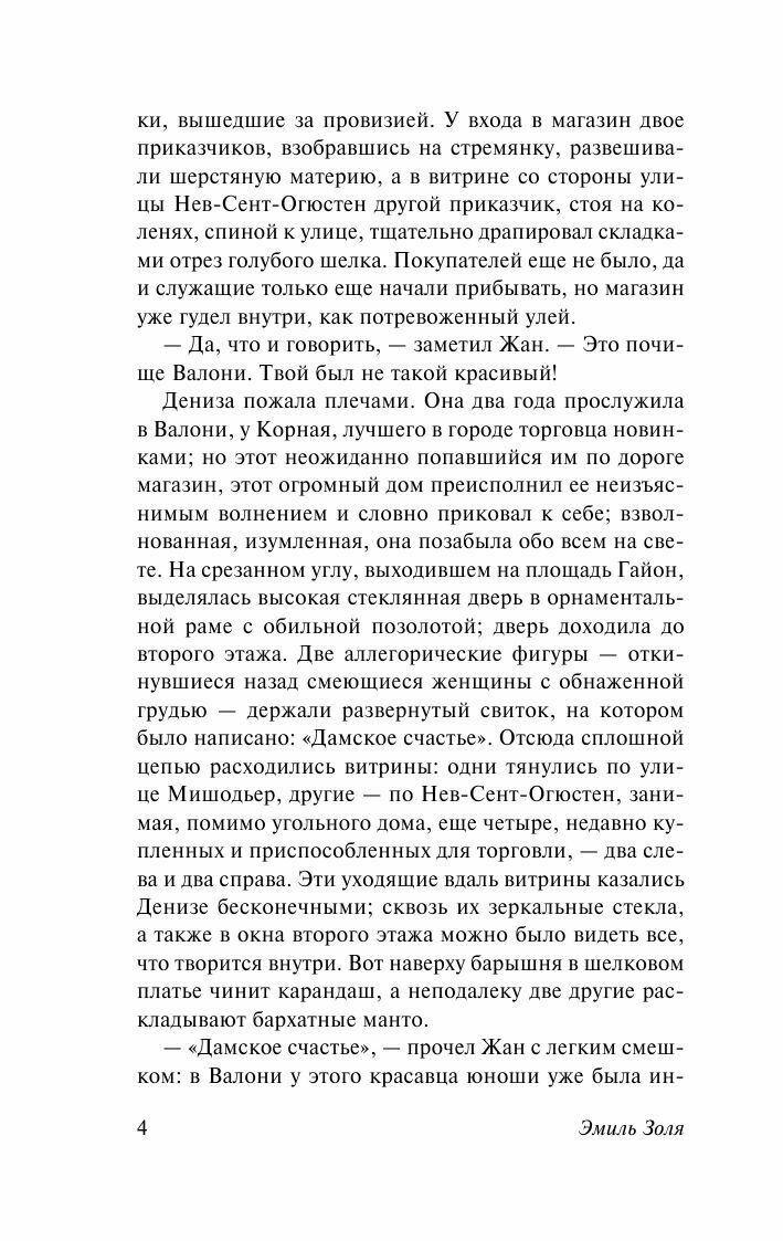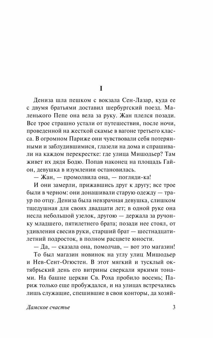 Добро пожаловать в мир шоппинга, расточительства и роскоши! "Дамское счастье" - это не просто магазин, это мечта любой женщины. Отрезы дорогих тканей, гирлянды воздушных кружев, дамские наряды, шёлковые чулки, манекены, отражающиеся в зеркальных витринах... С первых страниц автор с головой окунает нас в чарующую, пьянящую атмосферу женских радостей. В них можно затеряться и заблудиться, провести там весь день, так и не заметив убежавшего времени.