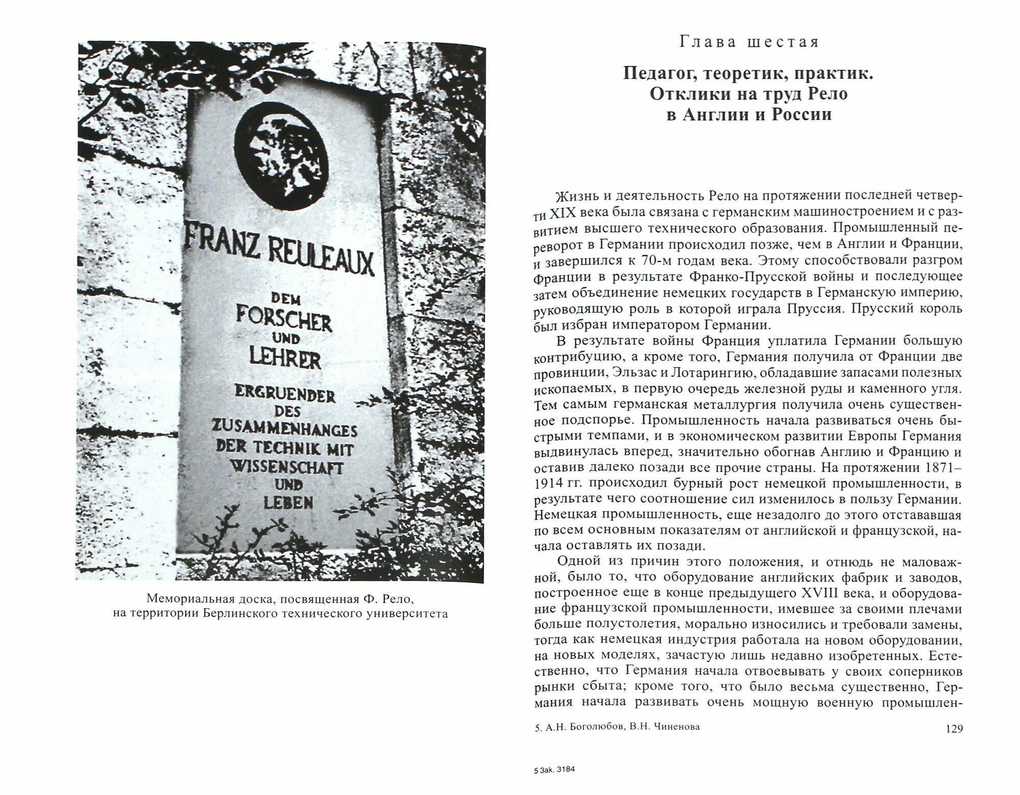 Книга посвящена исследованию жизненного пути, инженерной и научной деятельности выдающегося немецкого машиностроителя и теоретика машиностроения Франца Рело, имя которого вошло во все энциклопедии мира. Педагог, организатор науки Ф.Рело много усилий приложил для изменения статуса Берлинского ремесленного института (среднего учебного заведения), реорганизации его в Высшую техническую школу. Он был не только ученым, но и практиком, любил искусство, перевел на немецкий язык "Песнь о Гайавате" Лонгфелло, много рисовал и гравировал по дереву, писал о "художественном стиле в машиностроении".