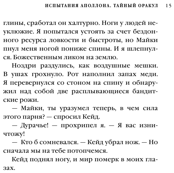 Новый цикл от Рика Риордана, повествующий о проблемах бога Аполлона, оказавшегося в теле подростка. В этот раз Эксмо выкупили права на оригинальную обложку, так что, надеюсь, эта серия будет отличаться от остальных оформлением. Новая серия весьма интересна, но читать ее стоит после Перси Джексона и Героев Олимпа. Подойдет как для детей, так и для взрослых. Перевод от Эксмо не идеален, но читается достаточно легко.