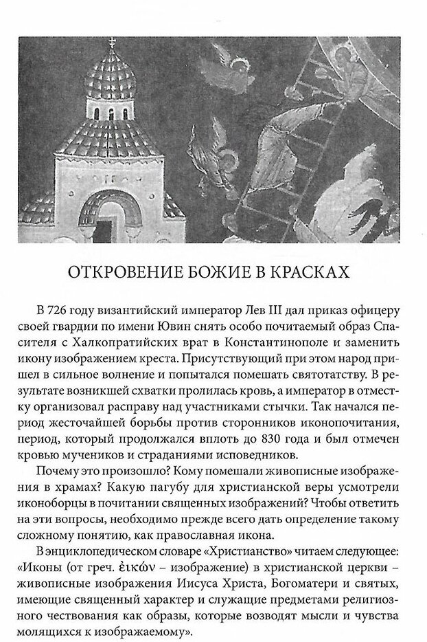 Интересная и позновательная книга. В начале дано отличие иконы от живописи. В каждой главе приведены черно-белые иллюстрации.
