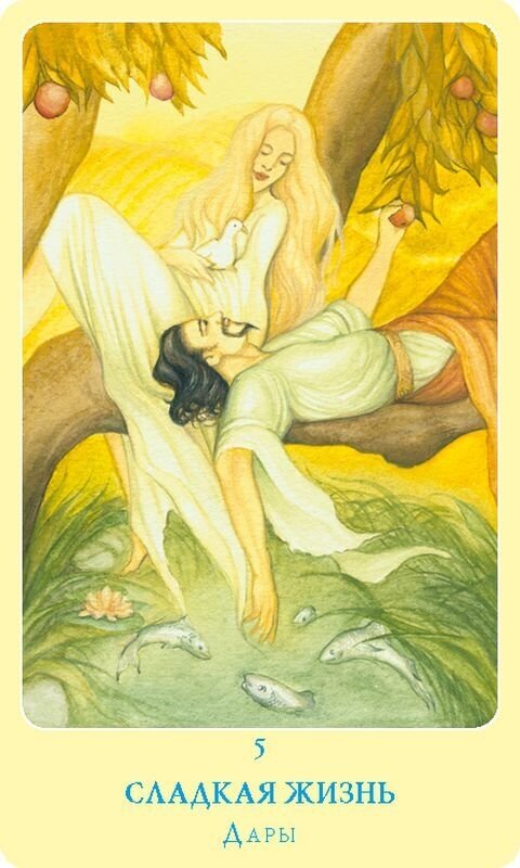 Колода отличная, оракульного типа, в теплой цветовой гамме. Иллюстрации говорящие, каждая карта - отдельная история, со своей энергетикой. Колода поделена на две группы: дары и ловушки. Колода подходит для изучения проблем уже устоявшихся взаимоотношений. Книгу к колоде написал сам автор Ч.Спецанно, пока я её только просмотрела и на первый взгляд написана хорошим языком, значения карт описаны подробно, с философско-психологической точки зрения.