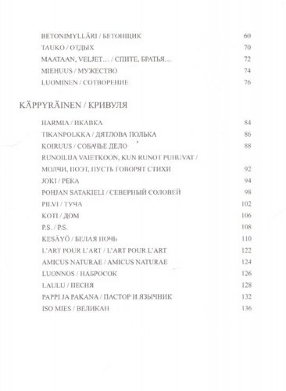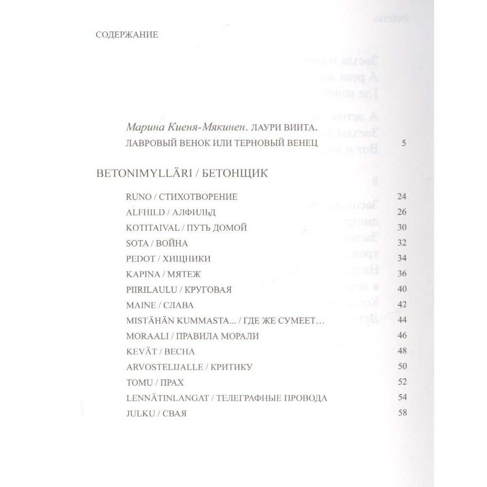Нередко случается так, что поэт остается пленником своей эпохи. Минует эпоха - стирается и его имя. Лишь те, у кого достало сил и мудрости писать о константах человеческого бытия, избегают подобной участи. Финский поэт Лаури Виита (1916-1965) из их числа. Из маленького мирка Писпалы, рабочего пригорода Тампере, он смело шагнул навстречу своему призванию, чтобы говорить с нами о добре и зле, о вечном и преходящем. В настоящее издание вошли избранные стихотворения из сборников "Бетонщик", "Кривуля", "И сапожник - большой мудрец", а также поэма "Счастье".