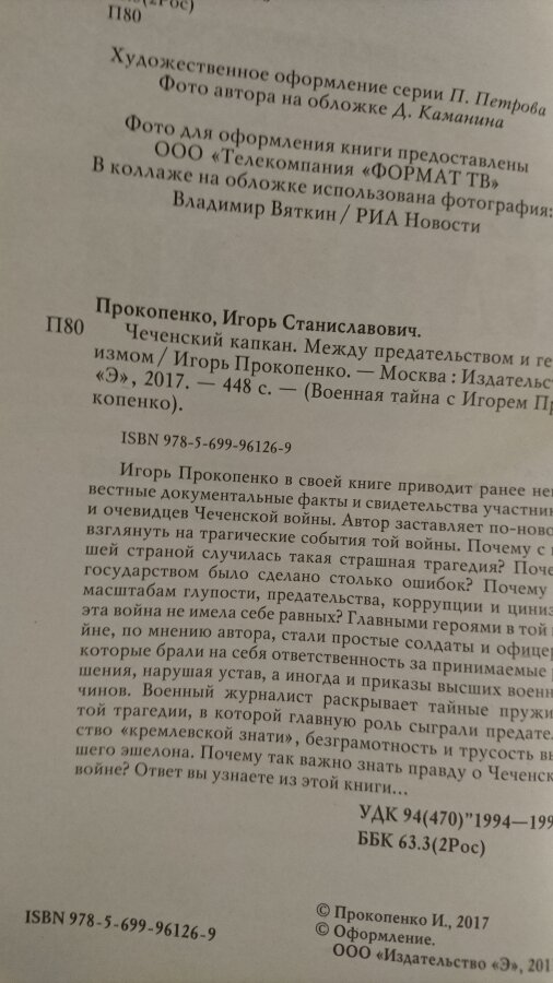 Сервис сравнения цен СкидкаГИД предлагает сравнить цены на товар «Книга: Чеченский капкан. Между предательством и героизмом (Игорь Станиславович Прокопенко); Эксмо, 2017»