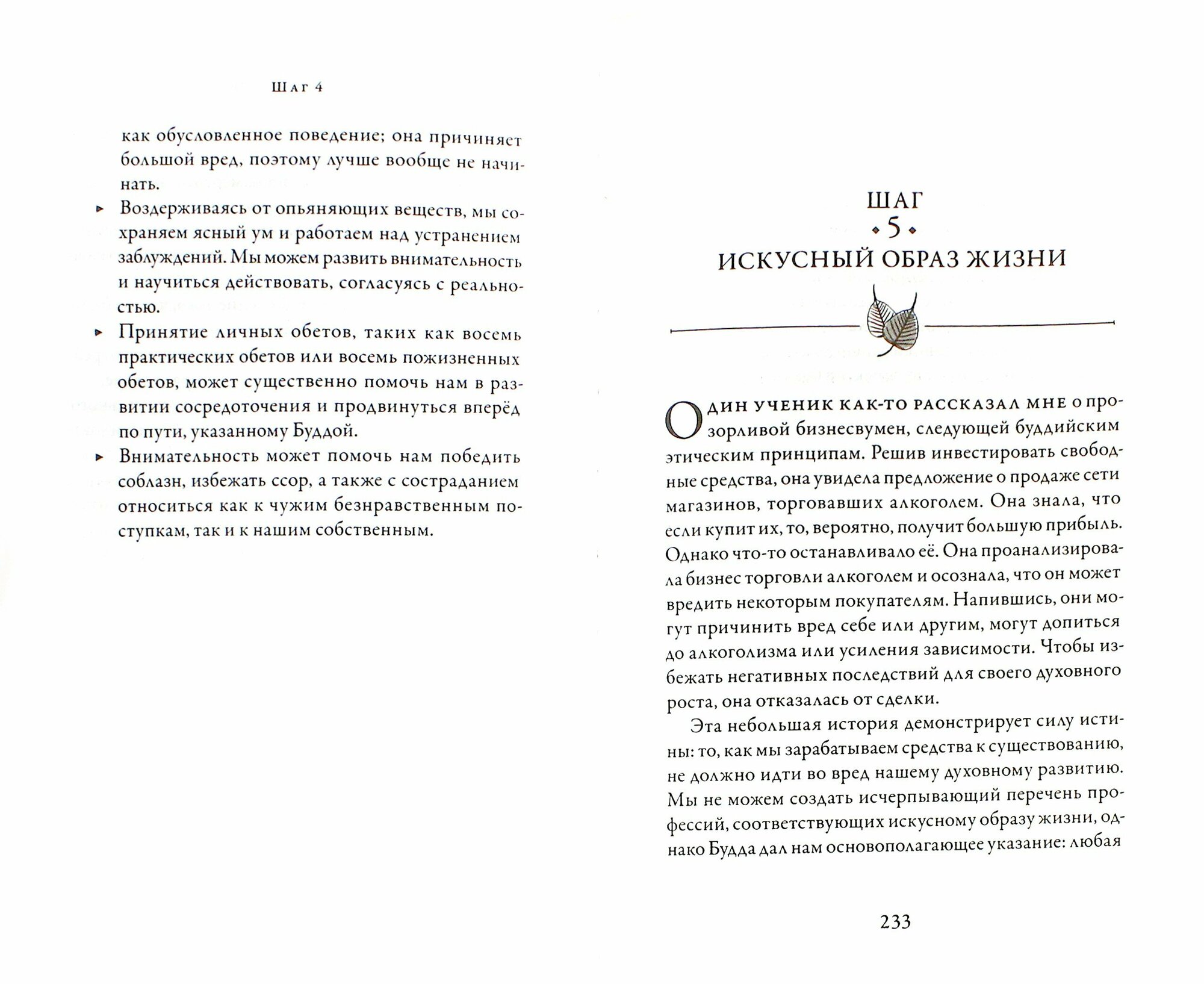 Книга удобна тем, что в ней автор доступным языком объясняет смысл каждого шага, приводит множество примеров, раскрывает грани и уровни каждой составляющей Пути, а также прилагает в качестве резюме к каждой главе «Ключевые моменты практики».