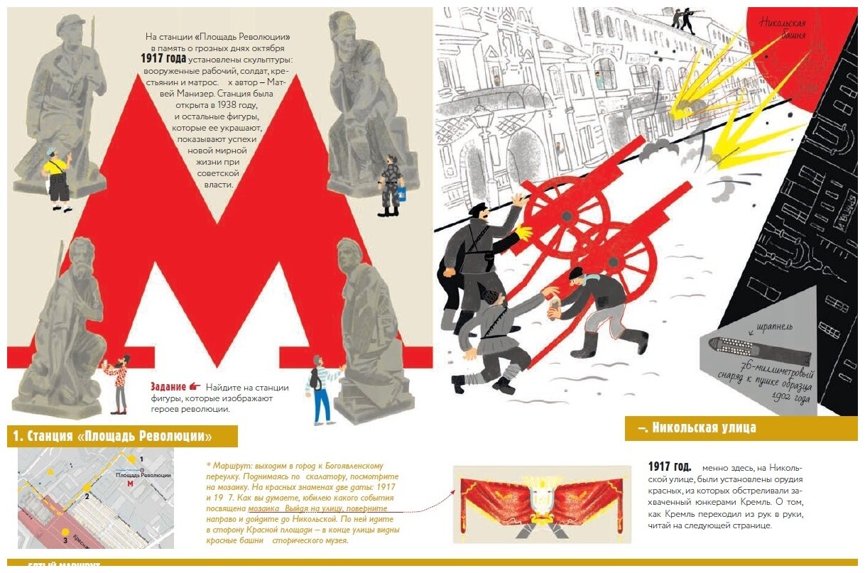 Для тех, кто любит прогулки по Москве, - новый необычный путеводитель. Найдите в столице следы русских революций 1905 и 1917 года: бои на Пресне, митинги у памятника Пушкину, обстрел Кремля большевиками. Также путешественникам предлагается маршрут для автопрогулки и обзор шедевров конструктивизма. Путеводитель поможет вам полнее и ярче представить себе улицы и жителей Москвы столетней давности. Для семейного путешествия.