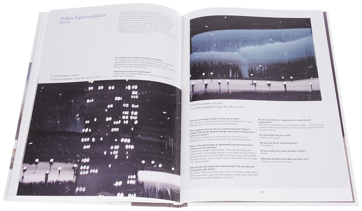 Данная книга – средняя из трех, созданных Константином Стерховым для знакомства с современными акварелистами всего мира. Она содержит репродукции работ двадцати художников в сочетании с интервью. Вопросы имеют общую часть: соотношение цвета и тона, выбор материалов, самые важные цвета палитры, спонтанность и плановость при работе итп. Изучение ответов в сравнении с акварелями принесет много пользы вдумчивому читателю.