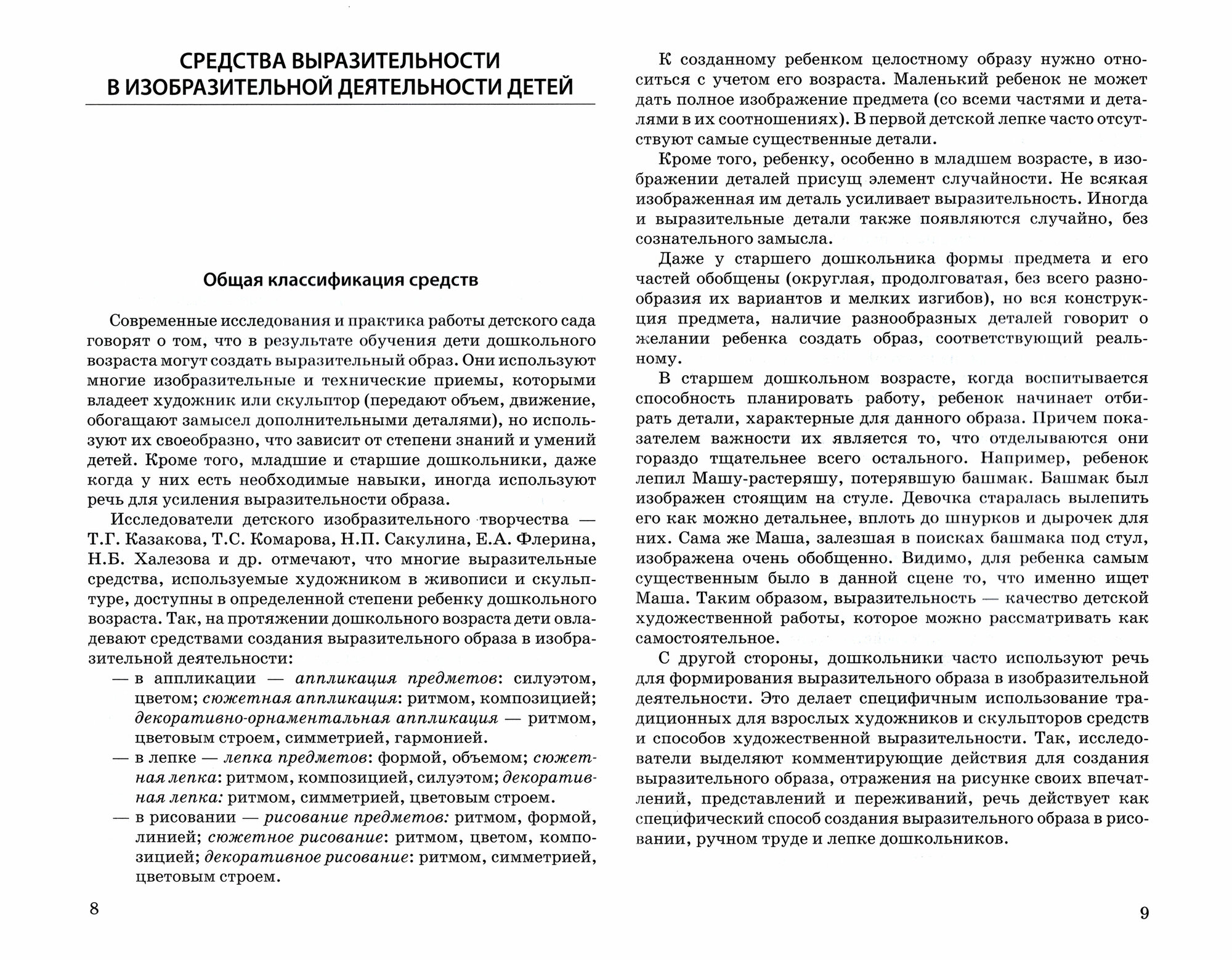 Приобрела книгу для себя,не пожалела.В пособии обобщен практический опыт работы воспитателей с детьми старшего дошкольного возраста, что для меня большой плюс. Книга раскрывает вопрос, как научить ребенка создавать выразительные образы в лепке, аппликации, рисовании.Книгу условно можно разделить на четыре раздела. Первый -это теория, без которой в своей работе мы не можем обойтись. А вот второй, третий и четвертый разделы- это практический материал (который занимает больший объем книги),посвященный рисованию, лепке, аппликации. Каждый из этих разделов начинается с экспресс-диагностики с критериями оценивания, в каждом представлен цикл занятий, разработанных в разных формах организации.По рисовании и аппликации представлены тематические планы. В разделе лепка- методические рекомендации для воспитателей, психолого-педагогические условия освоения средств выразительности в процессе лепки с детьми старшего дошкольного возраста. Рекомендую как стажистам, так и молодым специалистам для работы с дошкольниками.