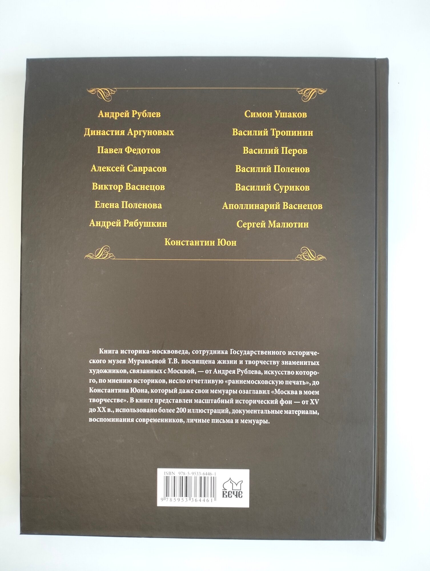 Книга историка-москвоведа, сотрудника Государственного исторического музея Муравьевой Т. В. посвящена жизни и творчеству знаменитых художников, связанных с Москвой, - от Андрея Рублева, искусство которого, по мнению историков, несло отчетливую "раннемосковскую печать", до Константина Юона, который даже свои мемуары озаглавил "Москва в моем творчестве". В книге представлен масштабный исторический фон - от XV до XX в, использовано более 200 иллюстраций, документальные материалы, воспоминания современников, личные письма и мемуары.